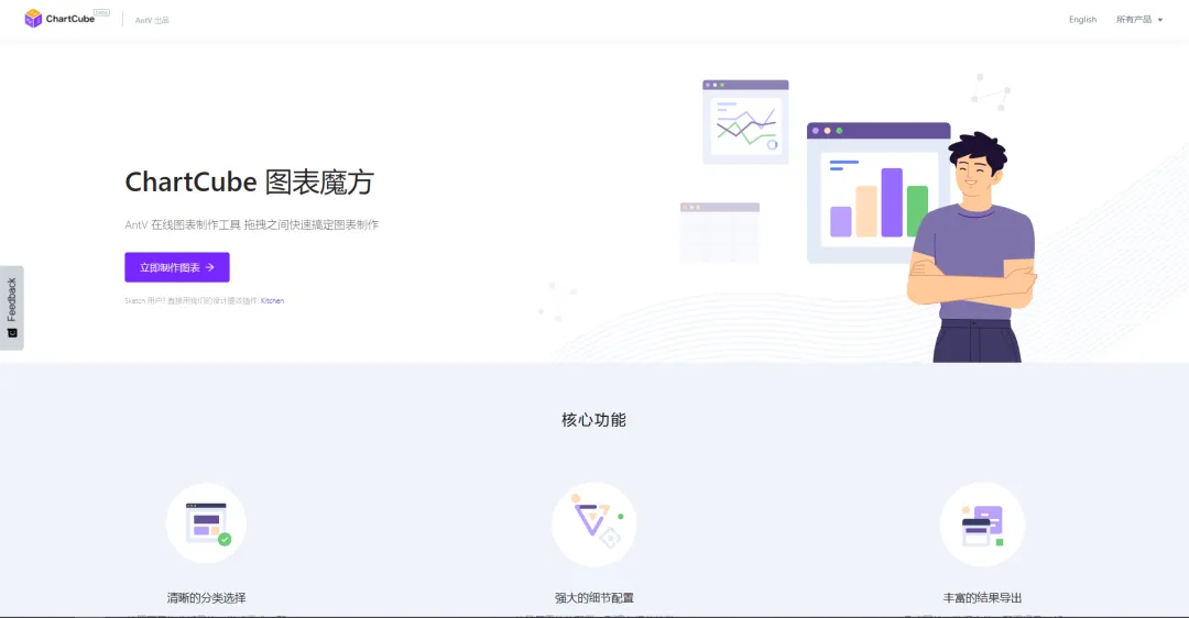 ChartCube(图表魔方)是阿里AntV团队推出的免费、免登录、在线数据可视化平台,主打一个"快速生成专业图表"。