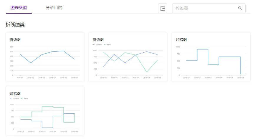 选择图表阶段,该平台可供使用的图表类型非常丰富,其中包括折线、柱状、条形、饼图、面积图、散点、热力图、雷达图等。如果上一环节就已上传数据,平台会自动匹配适合的图表类型。
