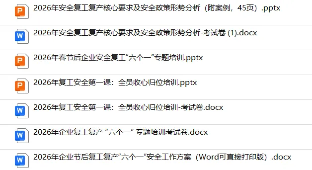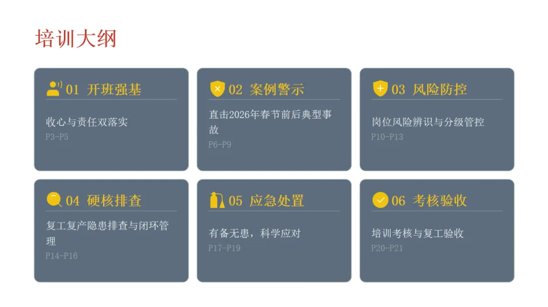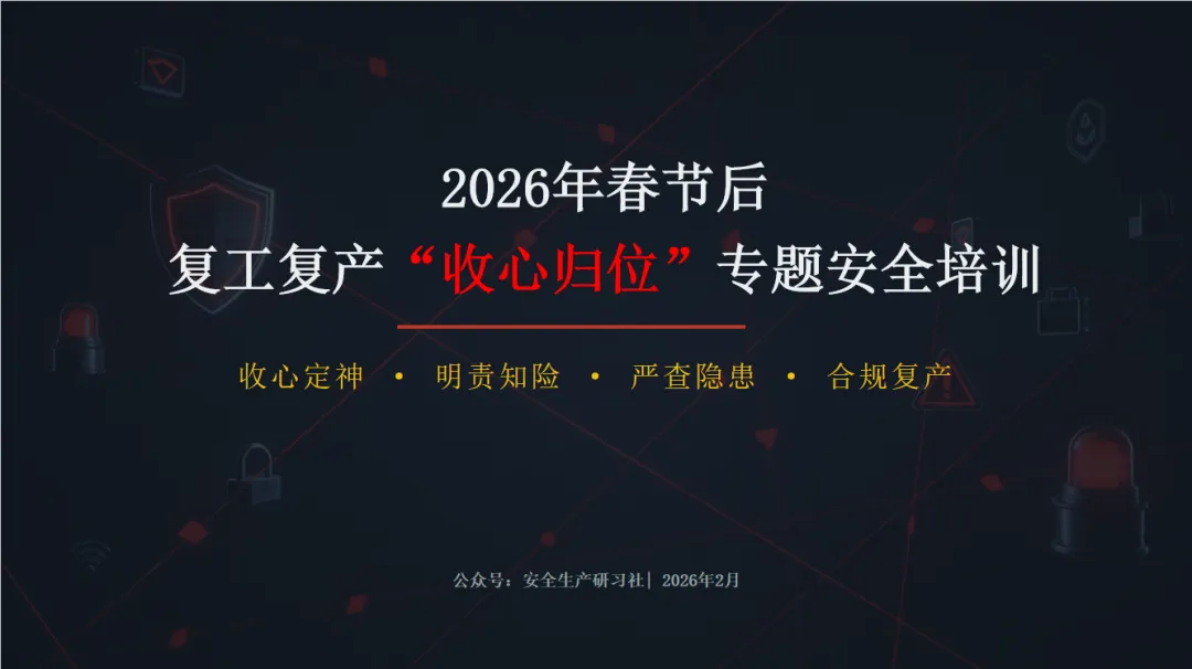 给大家整理了一份超实用的2026 年节后复工复产 “收心归位” 专题安全培训资料,直接拿去用👇
