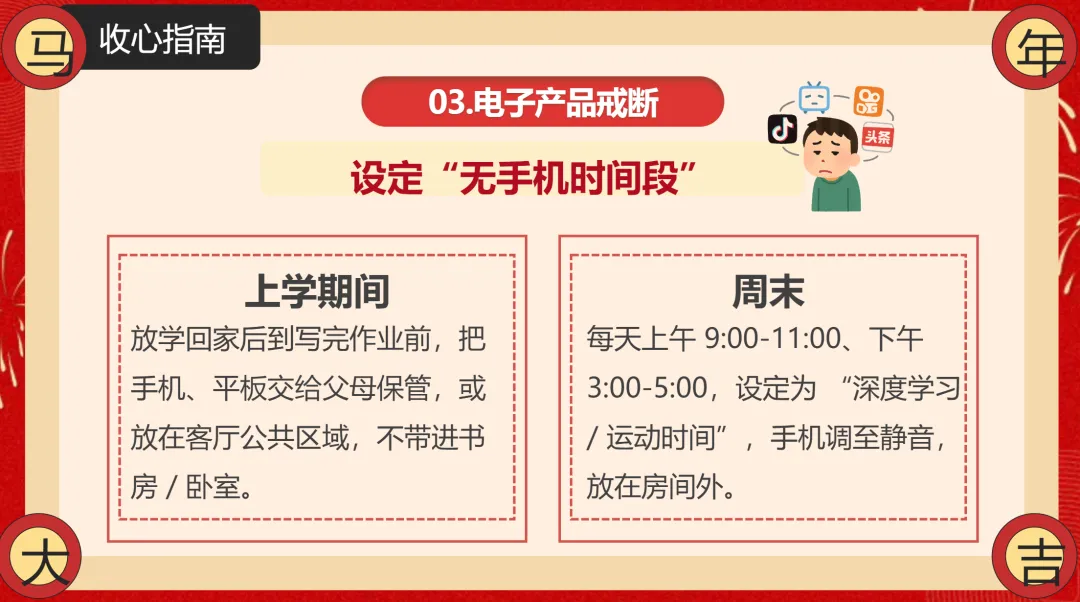不妨给自己设定 “无手机时间段”:上学期间,写完作业前把手机交给父母保管;周末留出深度学习和运动的时间,让手机远离学习空间。更可以培养线下兴趣,打球、跳绳挥洒汗水,画画、读书、做手工静心沉淀,和朋友面对面相处,感受真实世界的温暖与美好。也可以和同伴组建 “手机自控小组”,彼此监督,互相鼓励,让自律成为一种习惯。