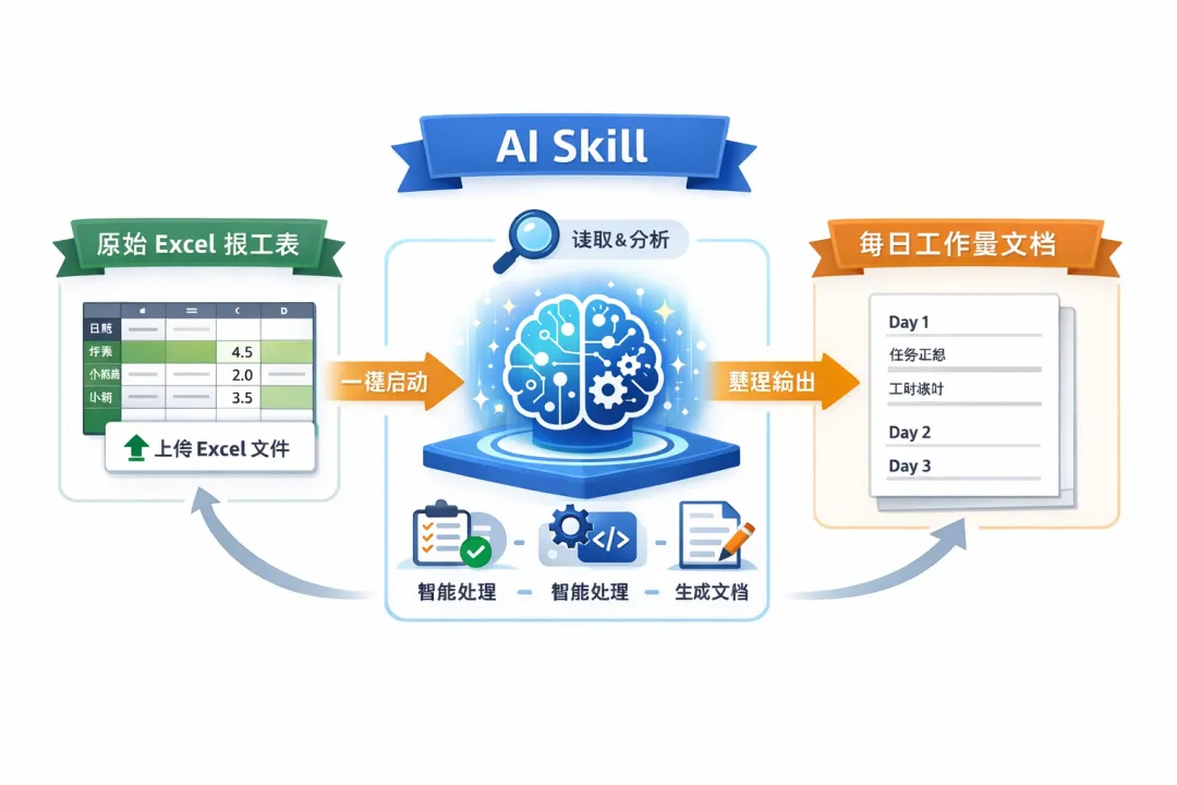 每天盯着报工表头秃?别慌!AI Skill 来帮你,一键搞定 Excel 工作量,半小时轻松省下的时间,你可以去喝咖啡、追剧或者偷偷发个朋友圈