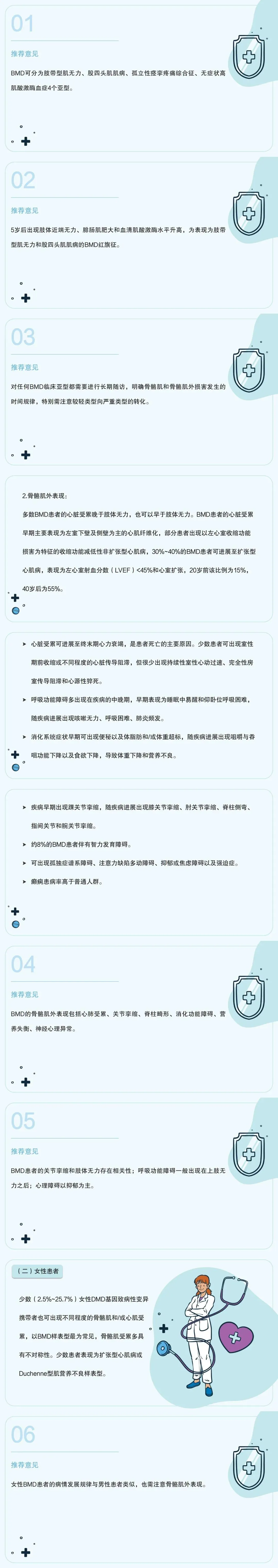 6.女性BMD患者的病情发展规律与男性患者类似,也需注意骨骼肌外表现。
