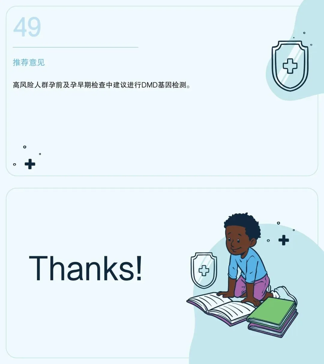 49.高风险人群孕前及孕早期检查中建议进行DMD基因检测。