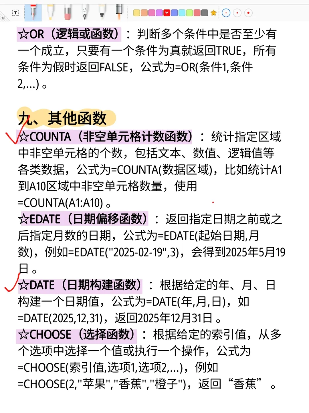 ✅COUNT(统计数值型数据个数函数):统计指定区域中数值型单元格的个数,公式为=COUNT(数据区域)。