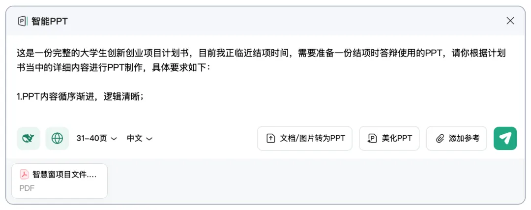 这是一份完整的大学生创新创业项目计划书,目前我正临近结项时间,需要准备一份结项时答辩使用的PPT,请你根据计划书当中的详细内容进行PPT制作,具体要求如下: 1.PPT内容循序渐进,逻辑清晰; 2.文件当中的图表都可以直接使用,或者作为参考使用; 3.PPT的总页数控制在25-35页之间; 4.要求内容要有主次分明; 5.记住这是一份结项用到PPT,而不是项目进展使用的; 6.PPT整体风格采用未来主义 & 科技极简 |