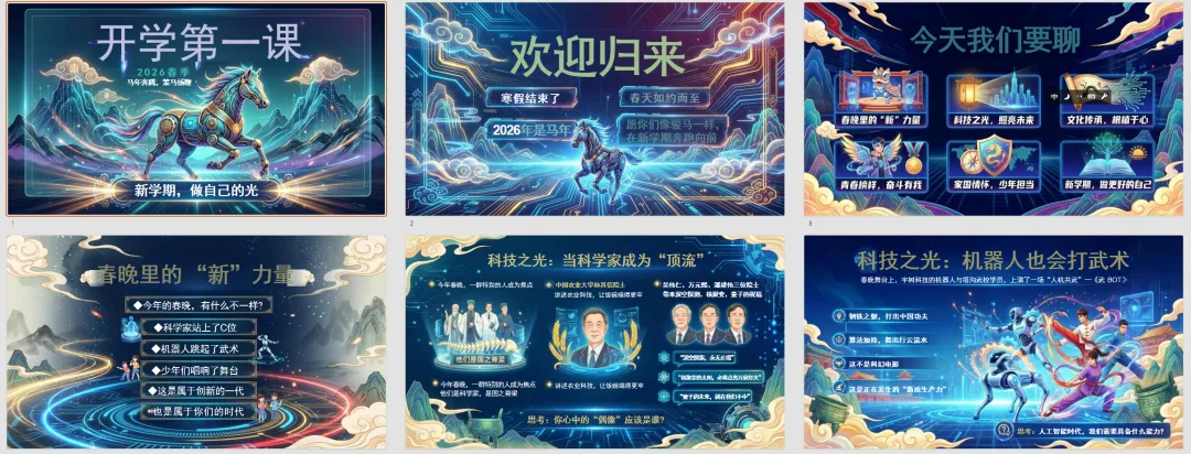 【中小学】2026春季开学第一课PPT:智能翩跹蕴国风,骐骥驰聘赴山海