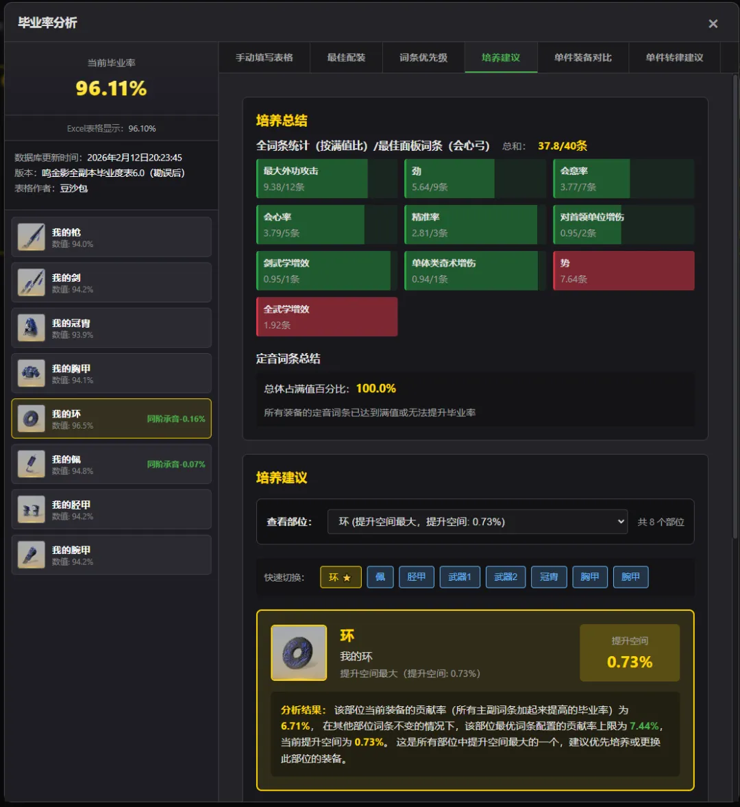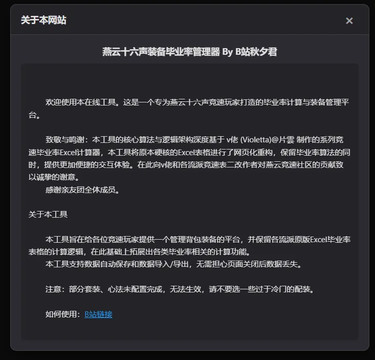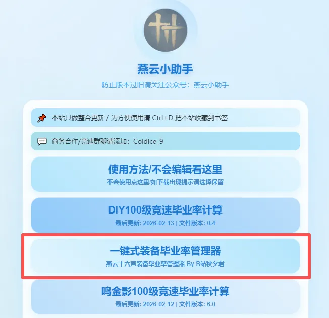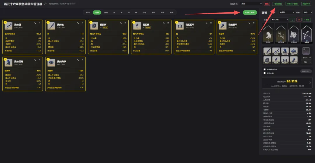 燕云十六声装备毕业率管理器