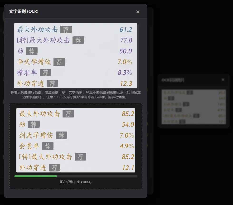 并且上传装备也支持截图一键识别