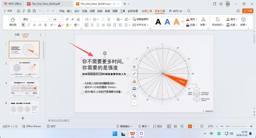 不过这样生成出来的 PPT,文字多少会有点对不齐,字体也可能变掉。所以还是要我们自己稍微调整一下。