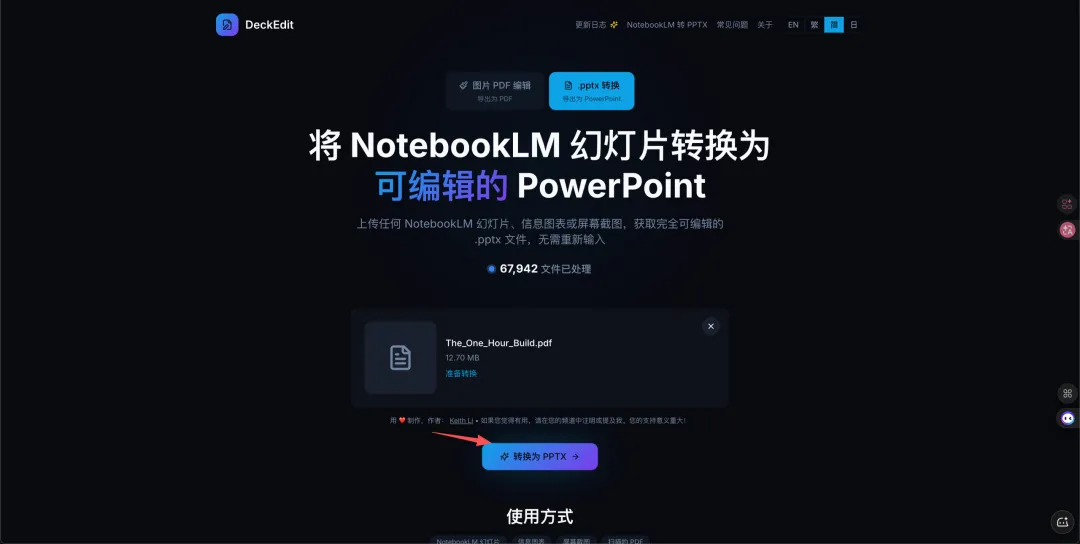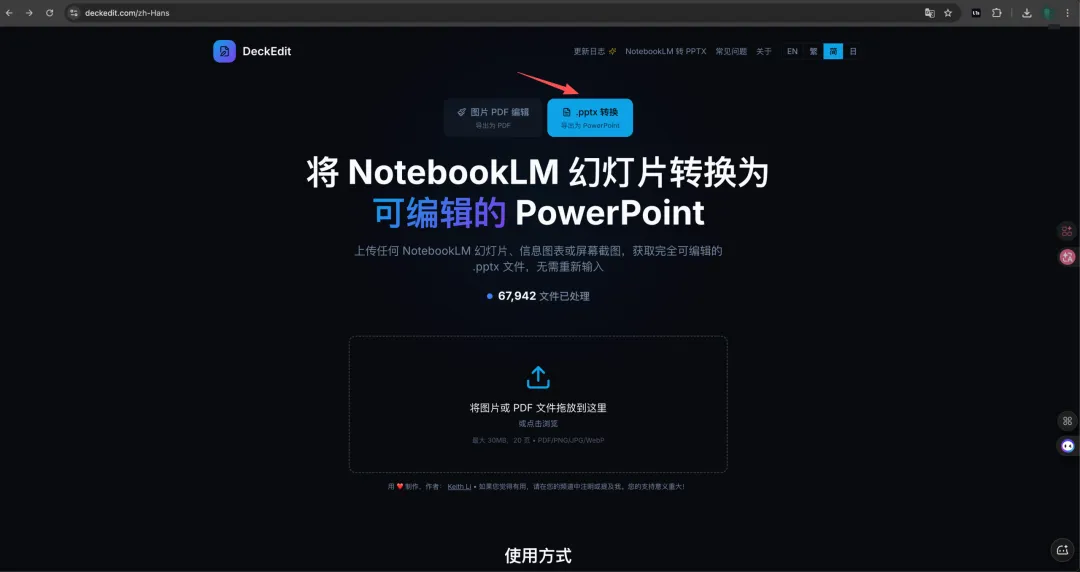 1.打开网站https://deckedit.com/zh-Hans 选择pptx转化
