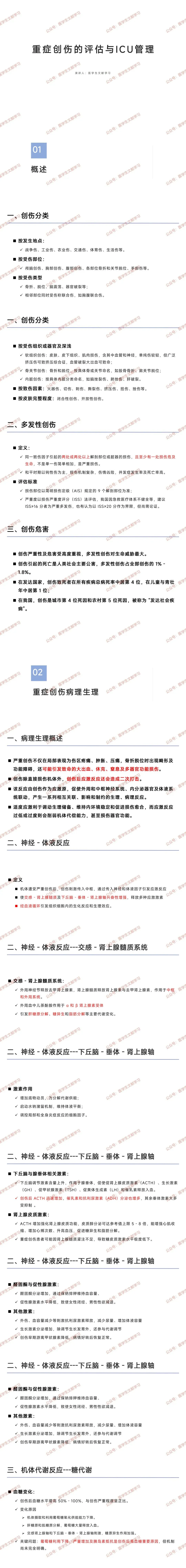 - 按组织器官:软组织创伤(含挤压综合征)、骨关节创伤、内脏创伤。