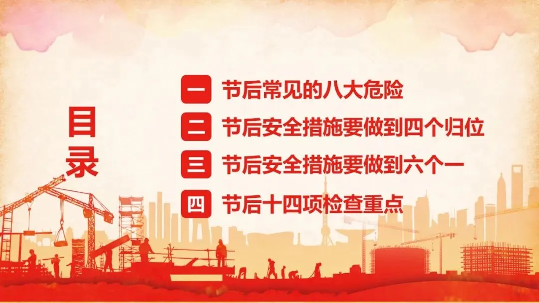 当前位置:首页>PPT>PPT ‖ 节后复工系列【第5套】21-2024年春节节后复工复产安全培训(八危、四归、六一、十四重点)(37页)
