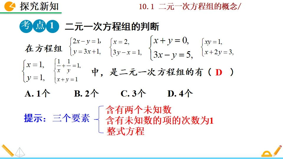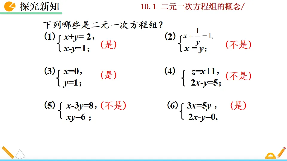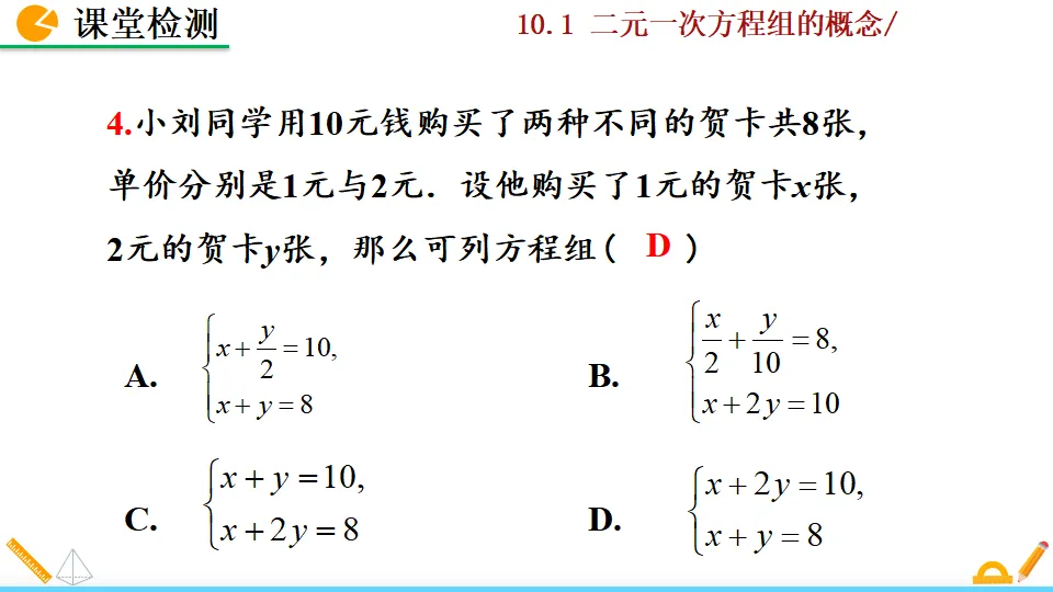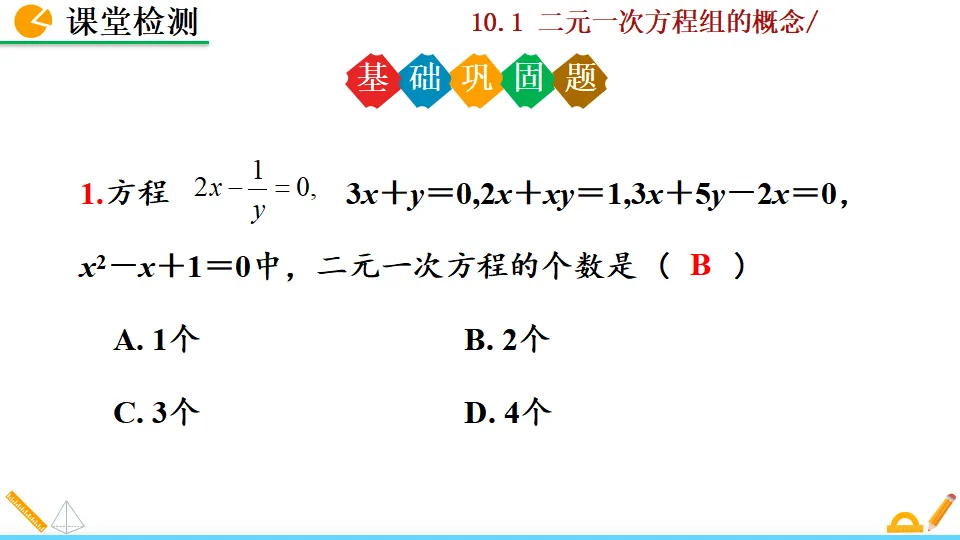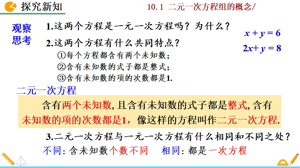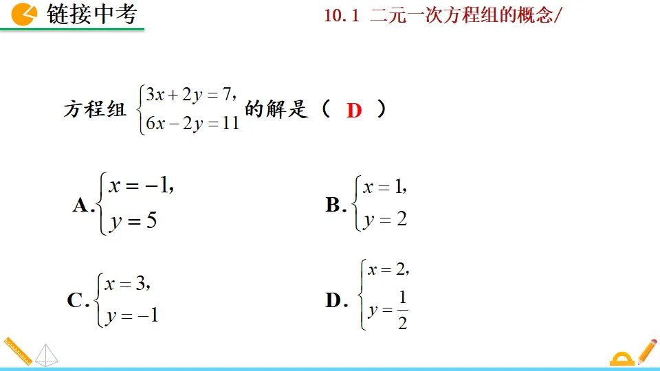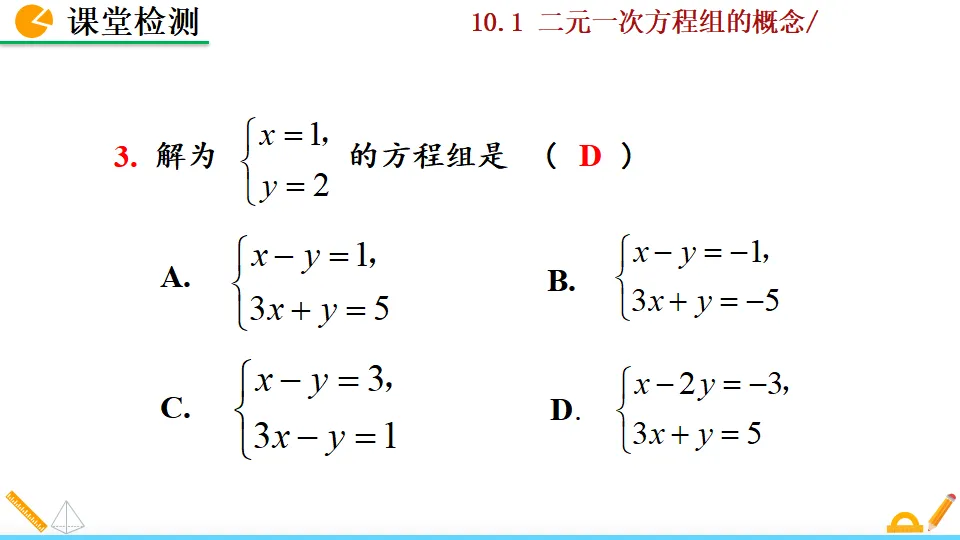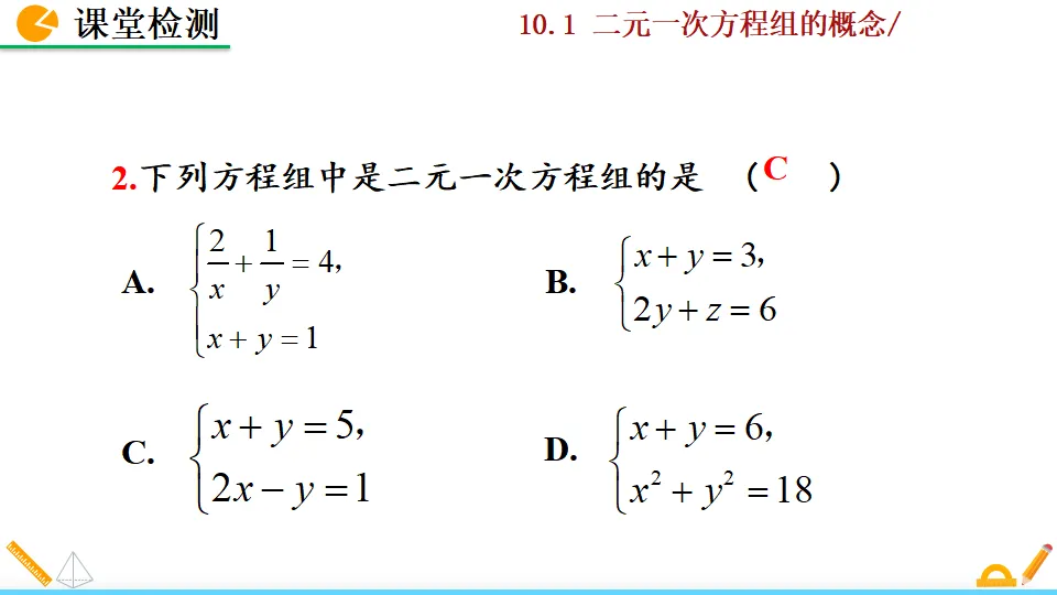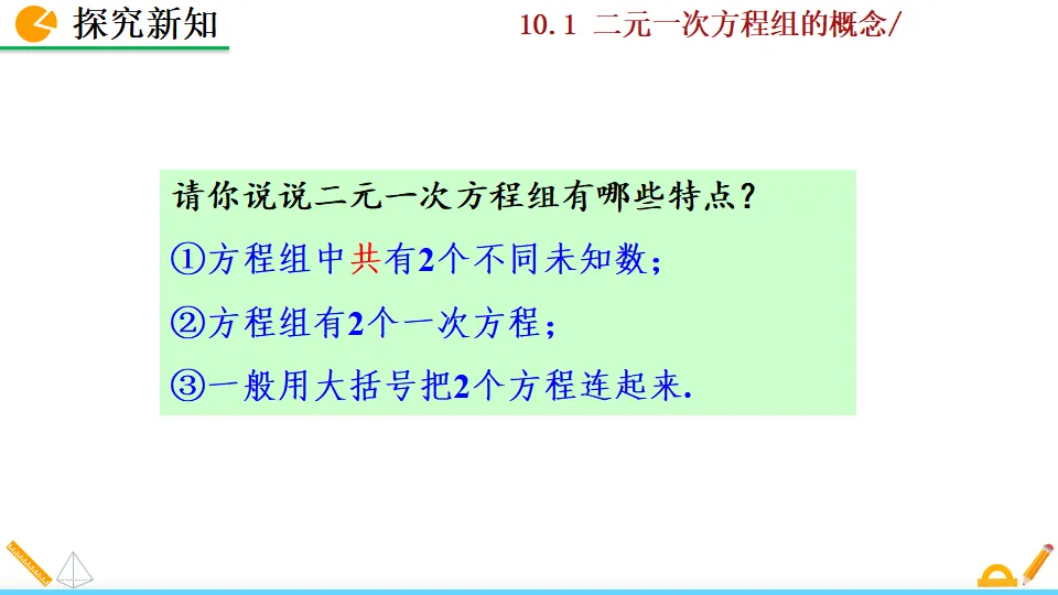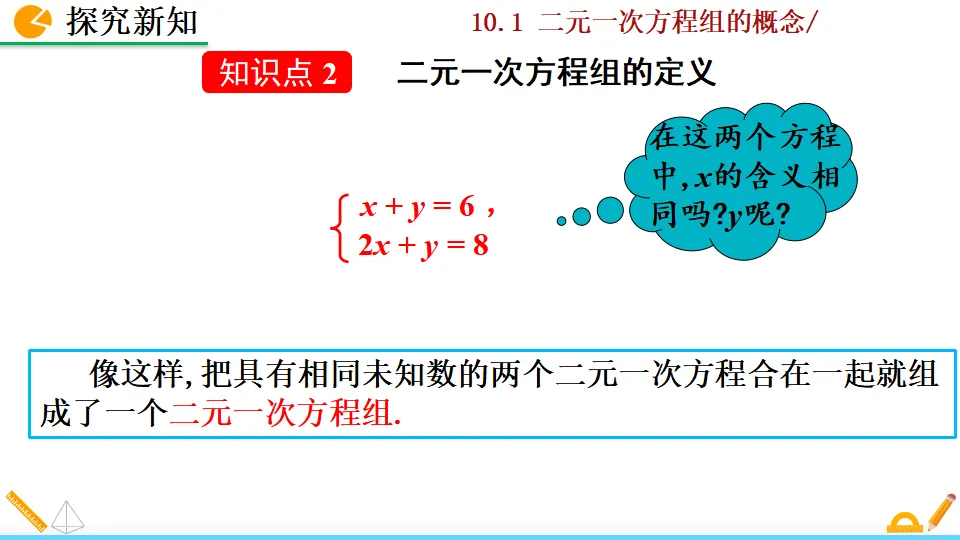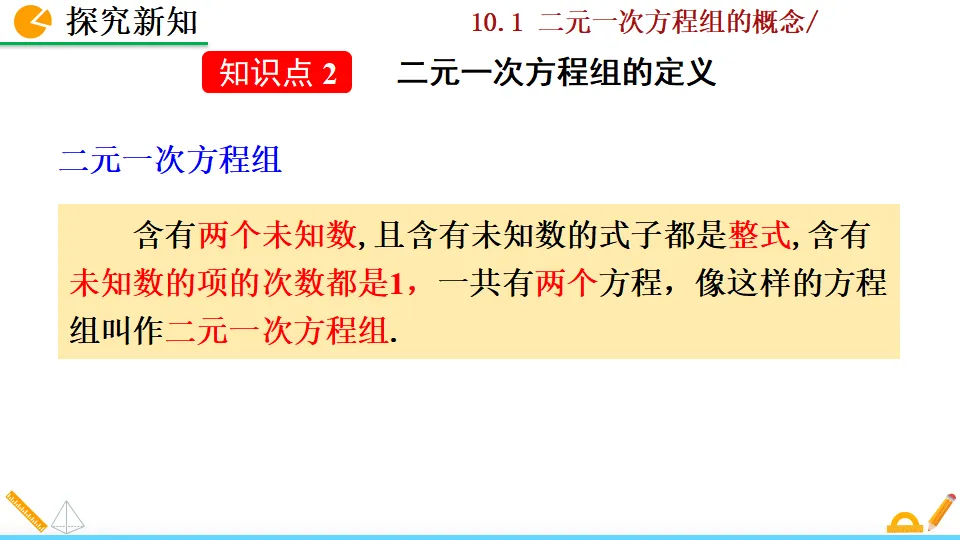 当前位置:首页>PPT>二元一次方程组的概念PPT教学课件人教版数学七年级下册