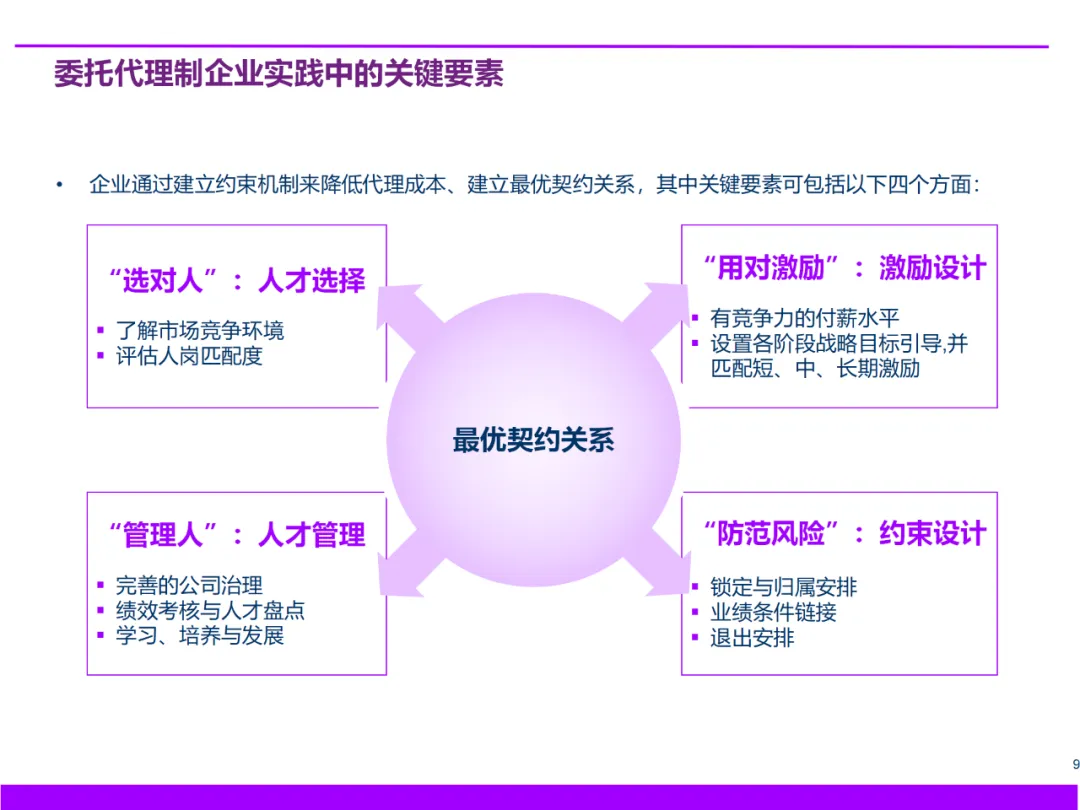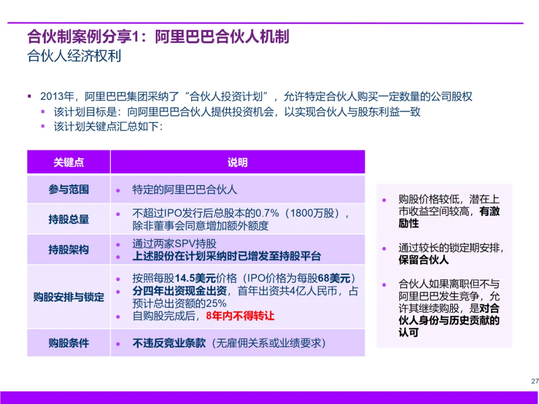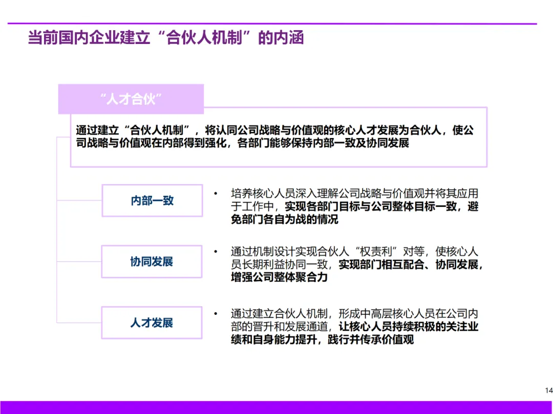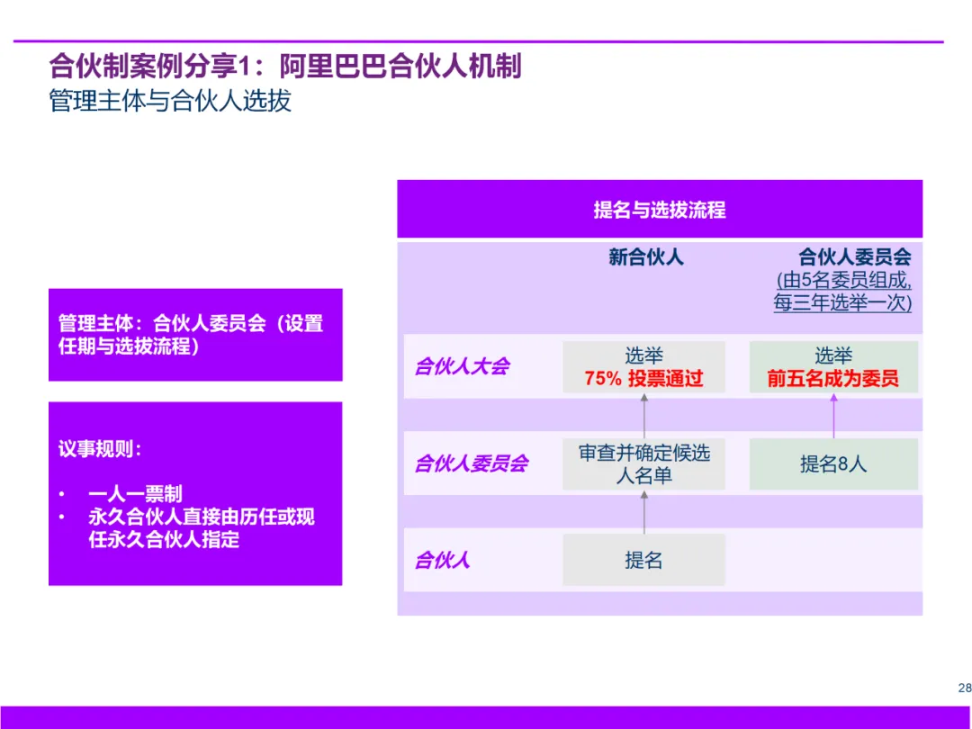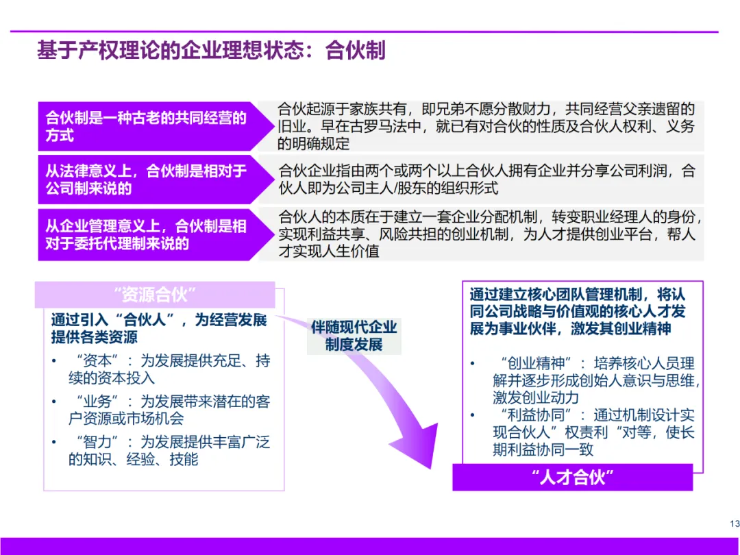人才合伙(核心): 严格选拔(业绩、能力、价值观、企业家精神)、分层管理(如阿里永久合伙人)。