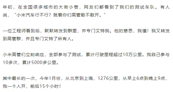汽车研发的关键节点,我也坚持亲自参与,比如冬测和夏测。3.4 高管亲自测试