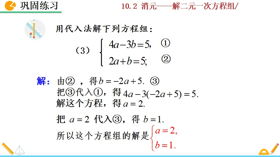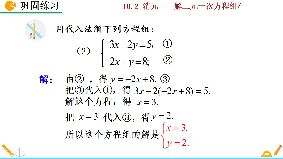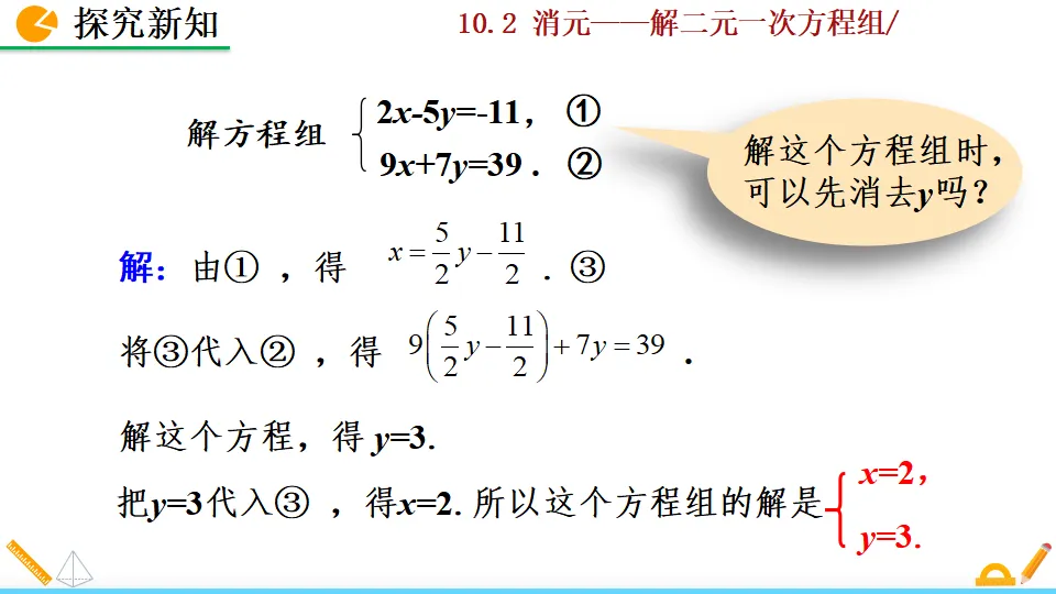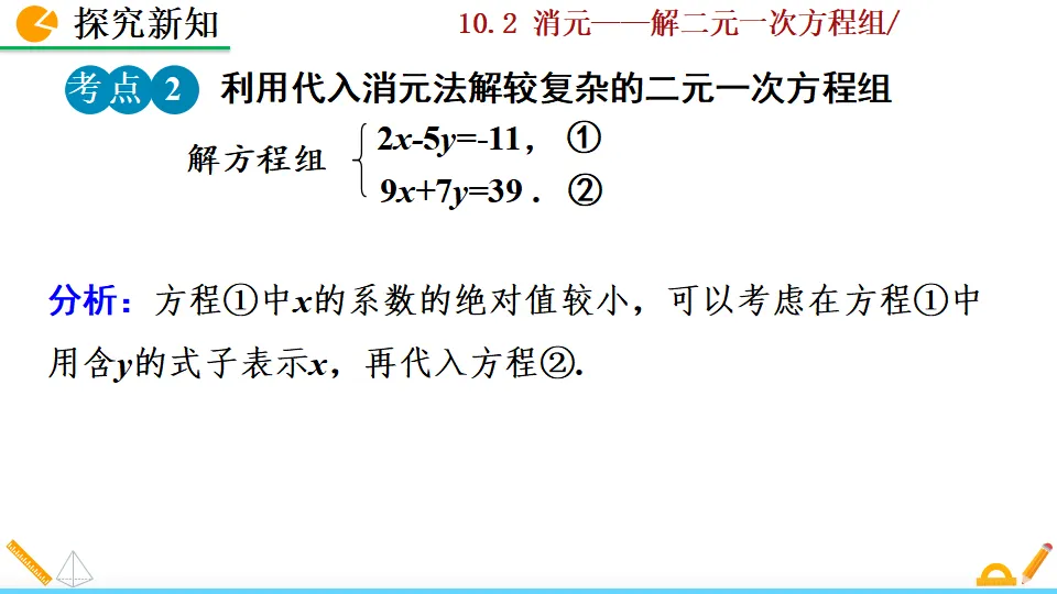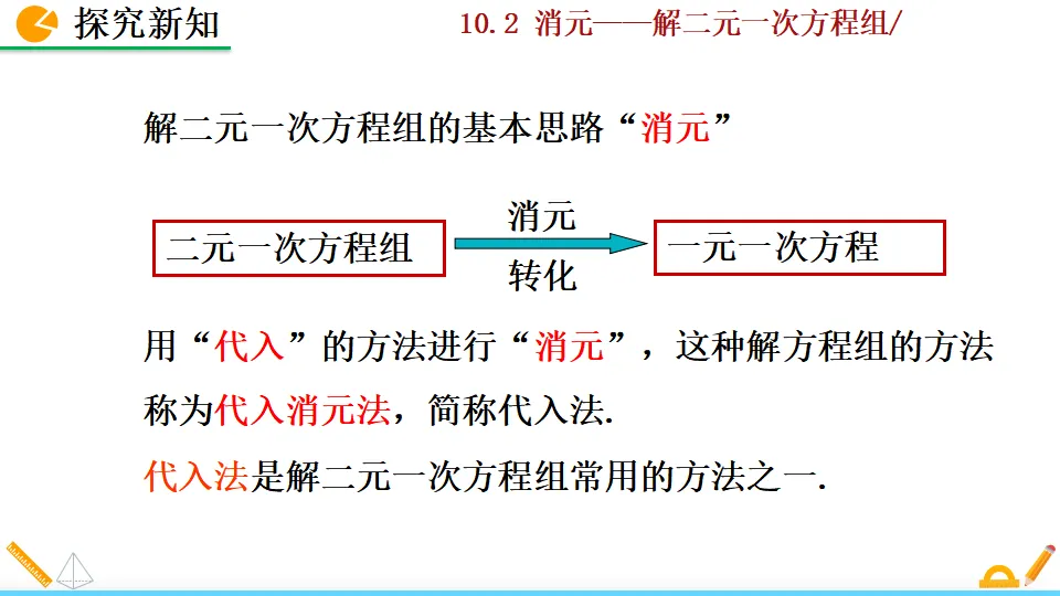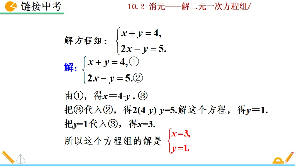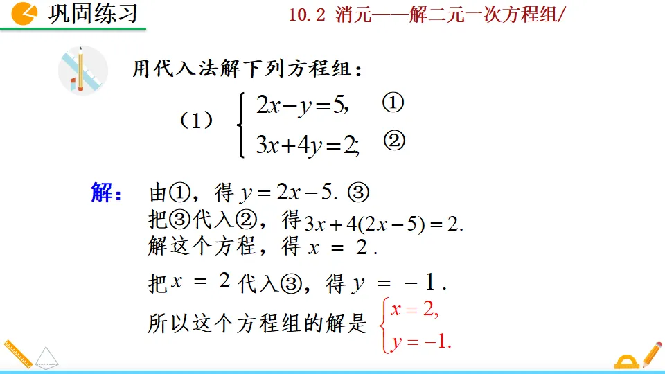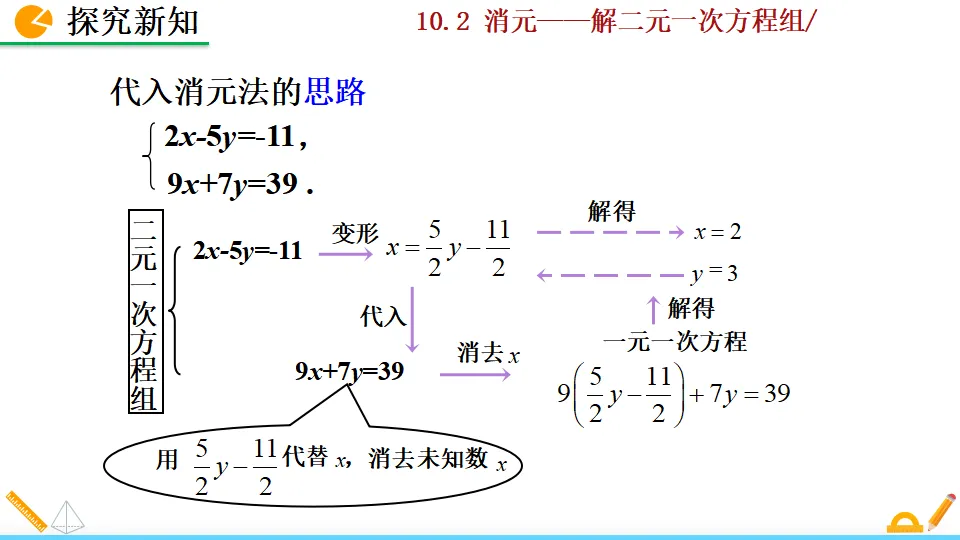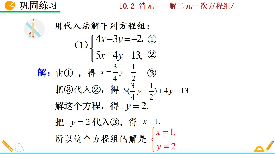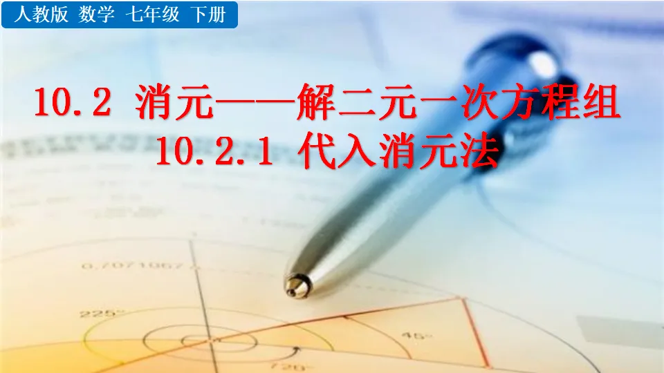 当前位置:首页>PPT>消元解二元一次方程组代入消元法PPT教学课件人教版数学七年级下册