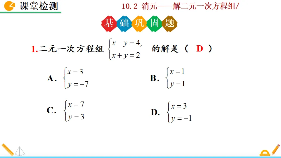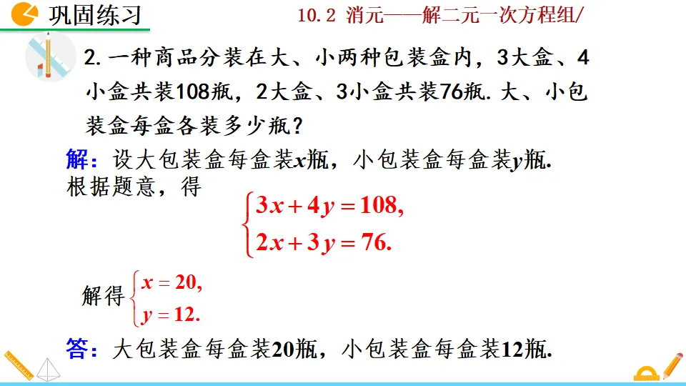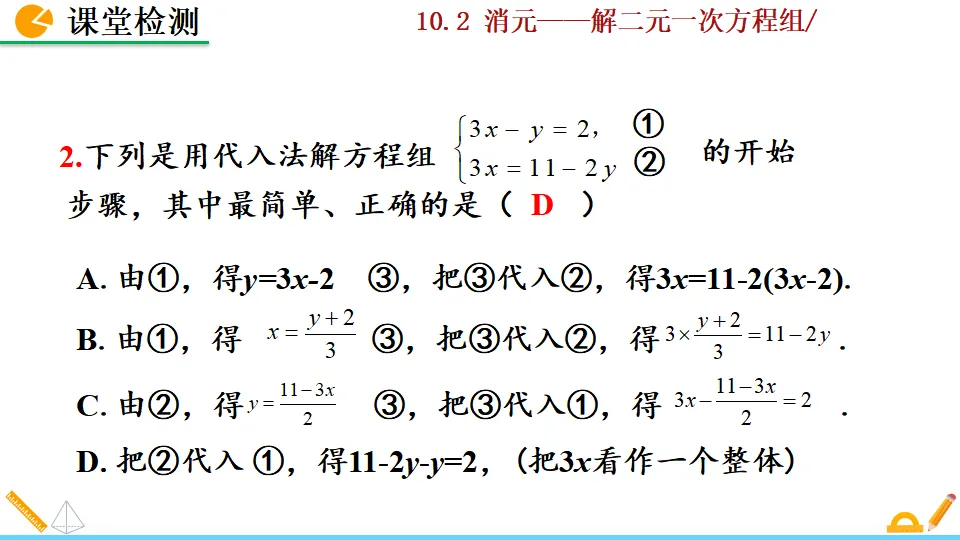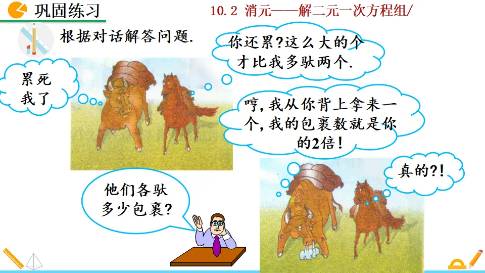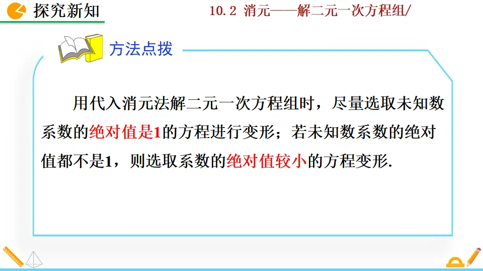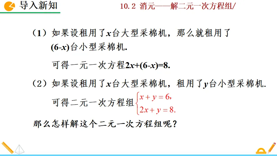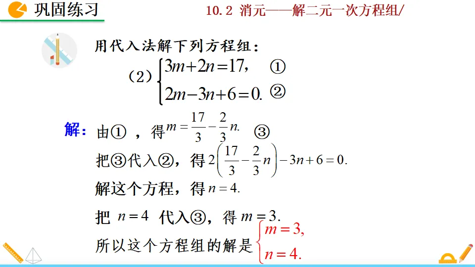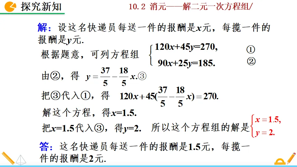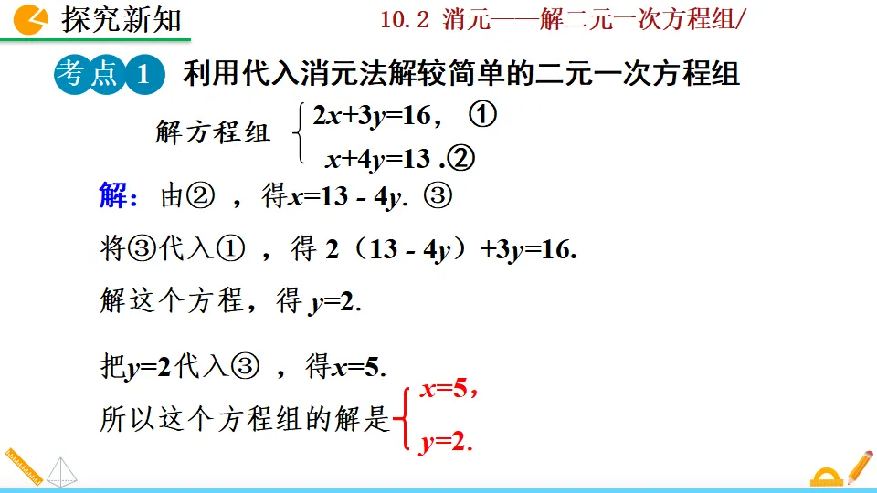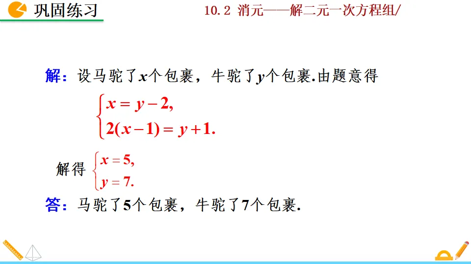 当前位置:首页>PPT>消元解二元一次方程组代入消元法PPT教学课件人教版数学七年级下册