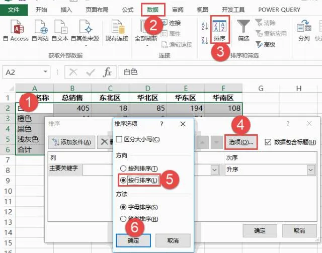 Step 01 选择区域,点击数据→排序→选项,选择按行排序,确定。