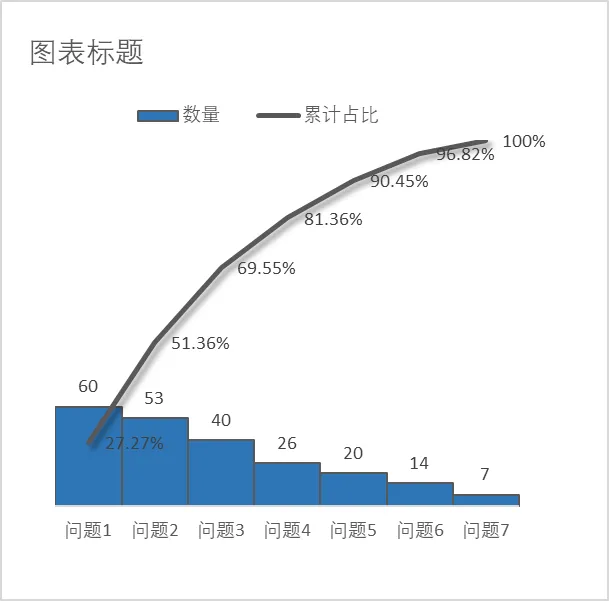 帕累托图的结构清晰明确:横轴代表不同的类别或原因(如产品缺陷类型、客户投诉原因);左侧纵轴是各类别的绝对数值(如频次、成本、金额);右侧纵轴则是累计百分比,从0到100%。