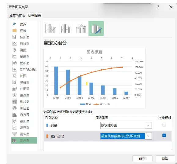 第三步、右击图形---修改图表类型-将累计占比改为散点图