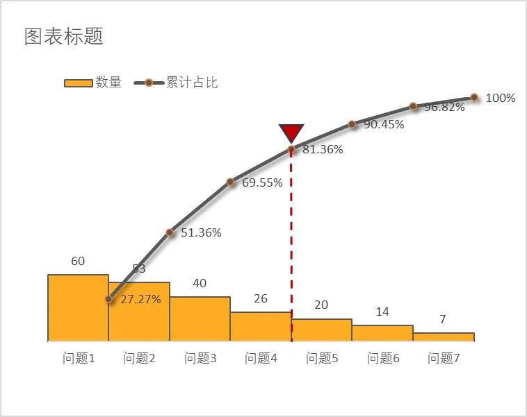 条形图按影响程度从左到右降序排列,直击最突出的问题。更重要的是那条折线,它从左下方0%开始,随着向右移动,每经过一个类别,就将其占比累加,最终抵达右上方的100%。
