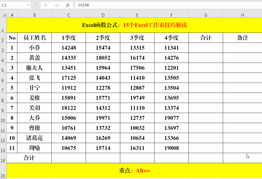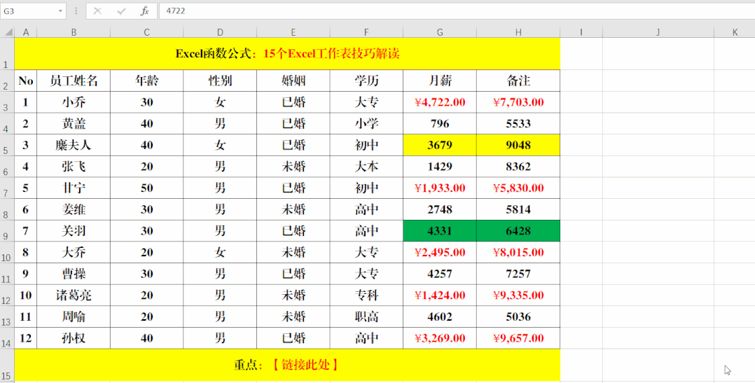 十四、Excel工作表技巧:不同单元格的数据同步更新