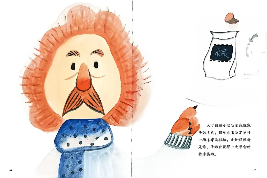 为了鼓励小动物们战胜寒冷的冬天,狮子大王决定举行一场冬季马拉松。无论获胜者是谁,他都会获得一大袋食物作为奖励。小动物们为了丰厚的奖品都想要和冬天拼一拼。