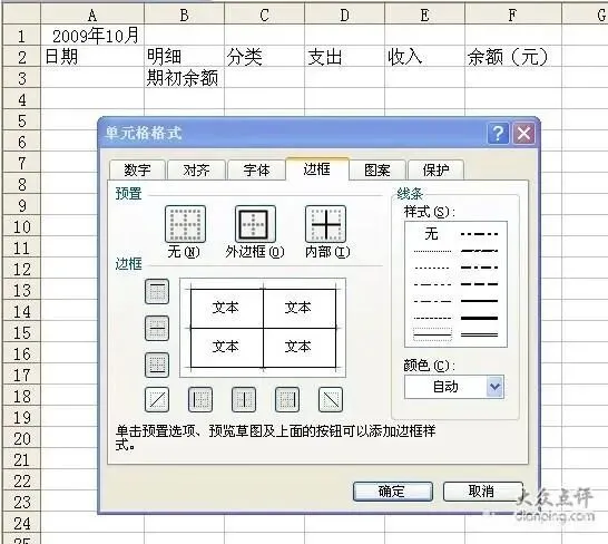 1.设置边框,选定要加边框的地方-鼠标右击-单元格格式,然后会设置成下图的样子,按确定。(其实可以用快捷方式