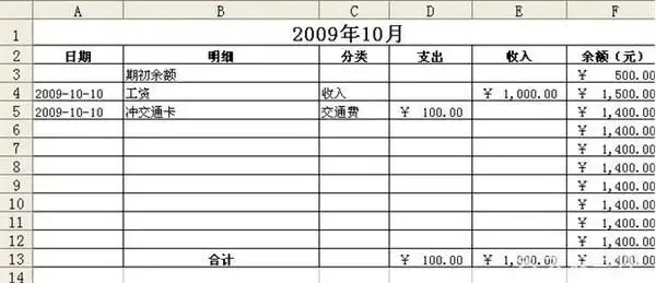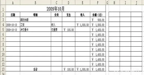 好啦,基本的框子就出来了。大家可以在上面记账了。
