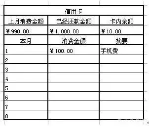 上面的现金表格完成后,我们现在来做第二个表格:信用卡表格。这个就很简单啦。几乎没有的可说的了。