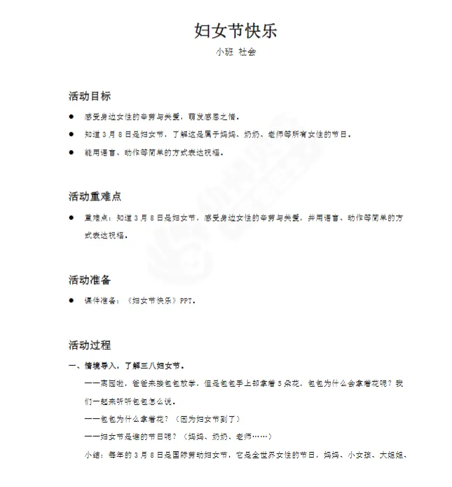 幼儿园小班_社会_课件《妇女节快乐》PPT+教案+活动反思+视频