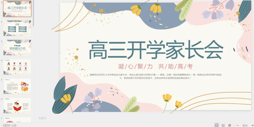 浅色背景多彩清新花卉高三开学家长会动态PPT.pptx