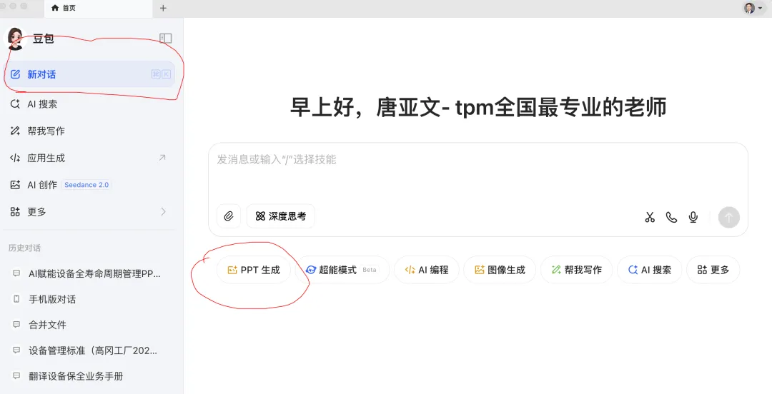 第二步:新建对话➡️选择制作“PPT”