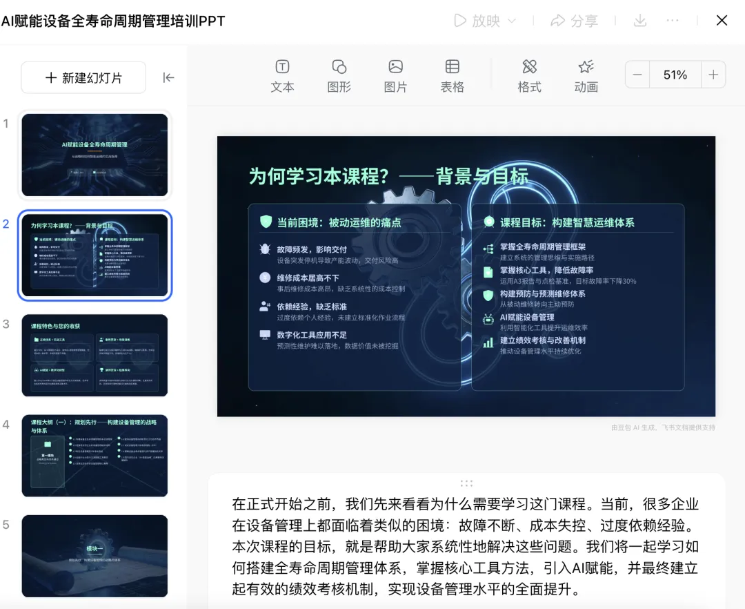 AI制作《设备全寿命周期》PPT课件