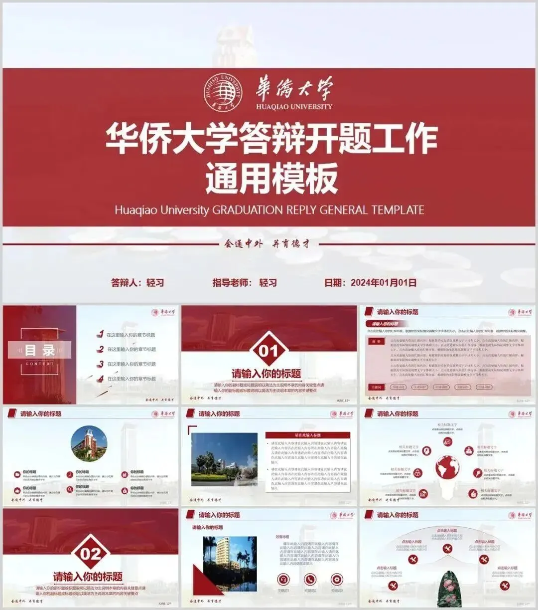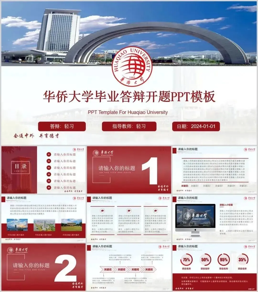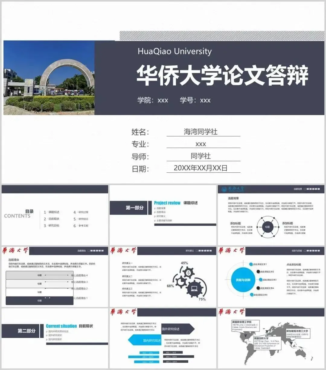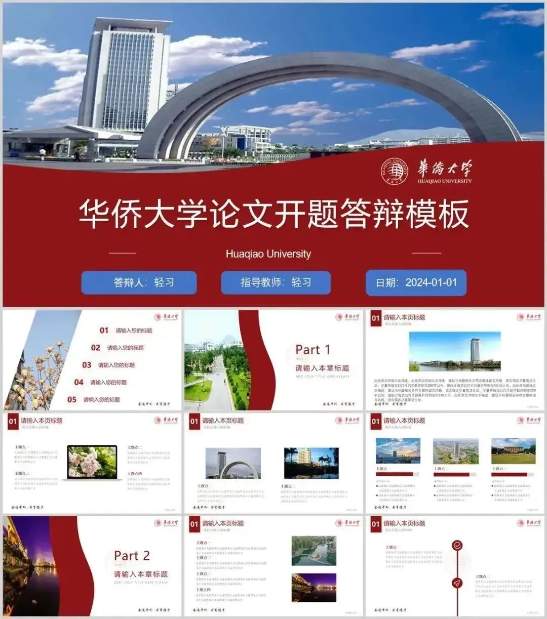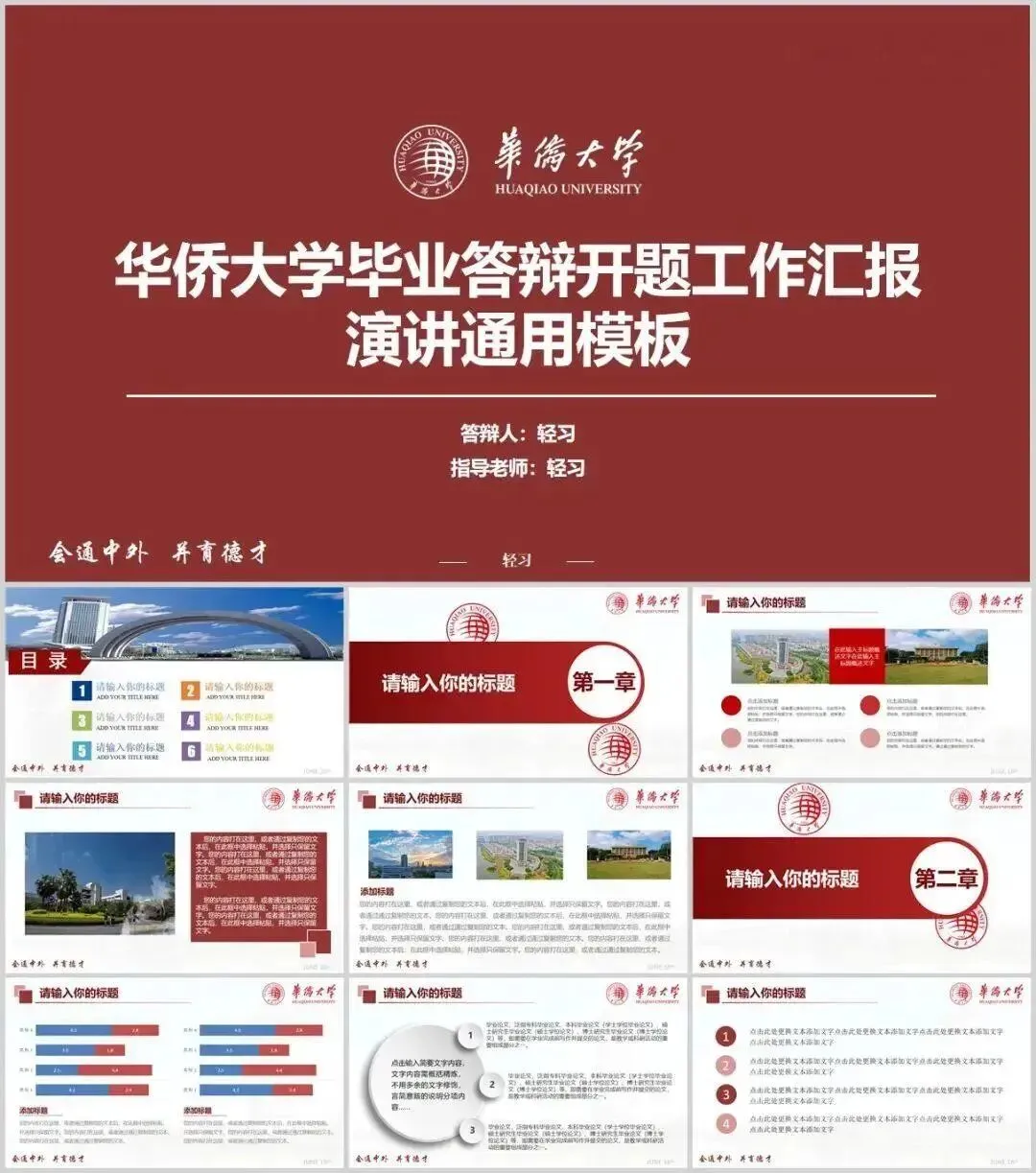 华侨大学专属PPT模板来了,喜欢的同学不要错过啦!