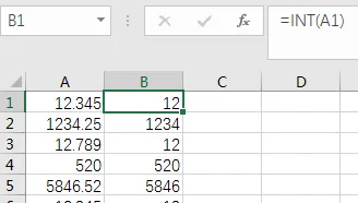 如INT(12.345)小于12.345的最大整数就是12
