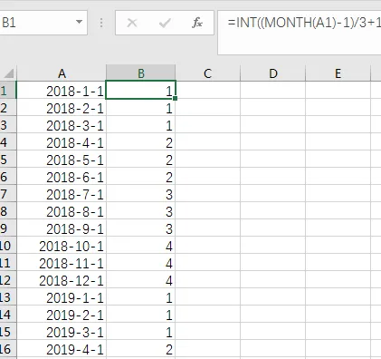 =INT((MONTH(A1)-1)/3+1)