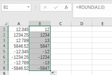 当第二参数为0时,四舍五入只保留整数位,为1时保留1位小数,为2时保留2位小数,为-1时四舍五入至十位,为-2时四舍五入至百位,以此类推。