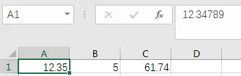 如下图所示,A1在单元格格式里设置了保留小数点后两位小数,当我们在C1输入公式=A1*5时得出来的结果是61.74这是因为单元格格式只是化妆术,并没有改变数字本身,实际参与运算的还是12.34789,因此得出来的结果和我们所看到的=12.35*5的结果有差异。