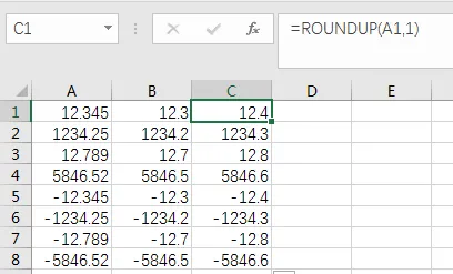 相对应的ROUNDUP就好理解了,按指定位数不管大小向上舍