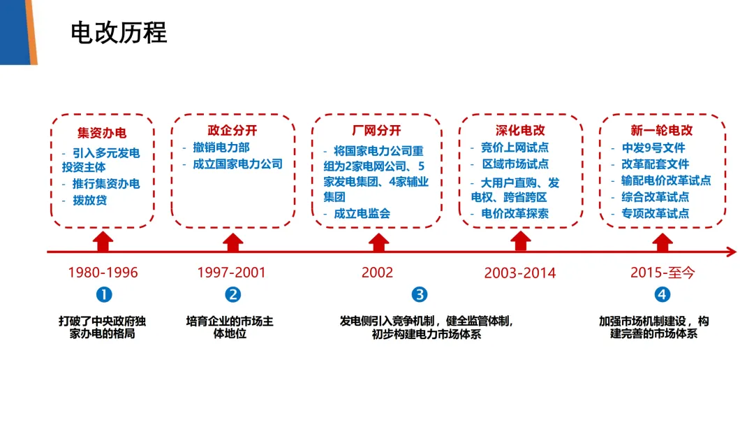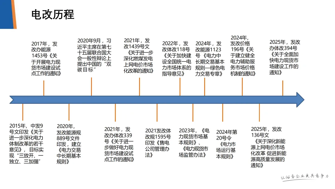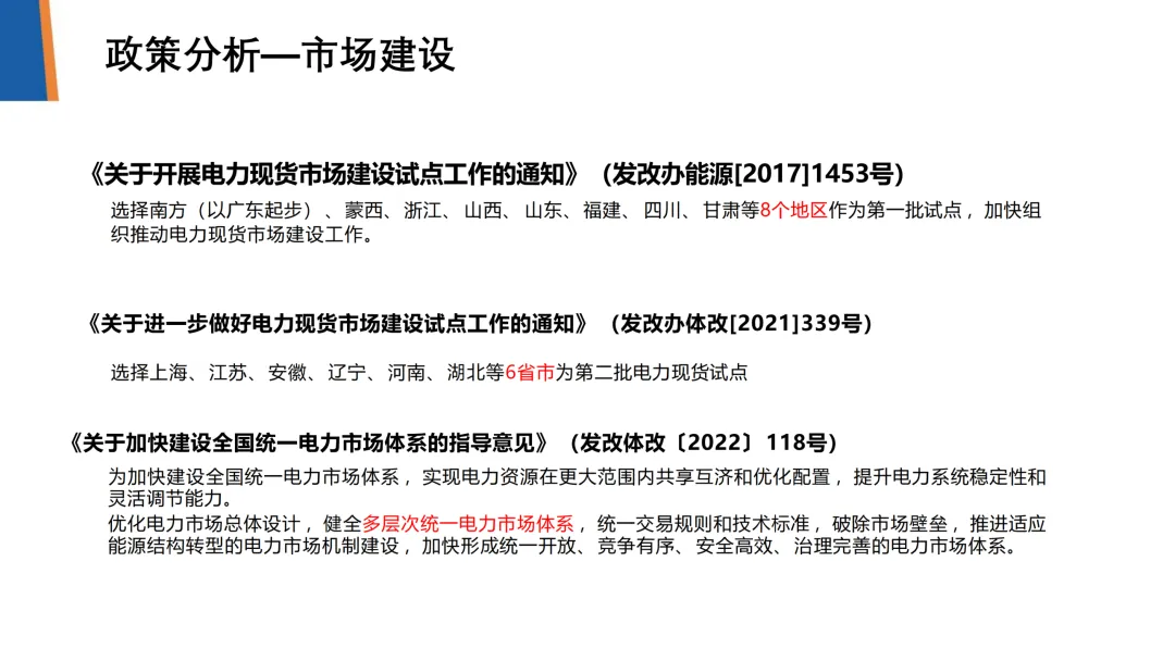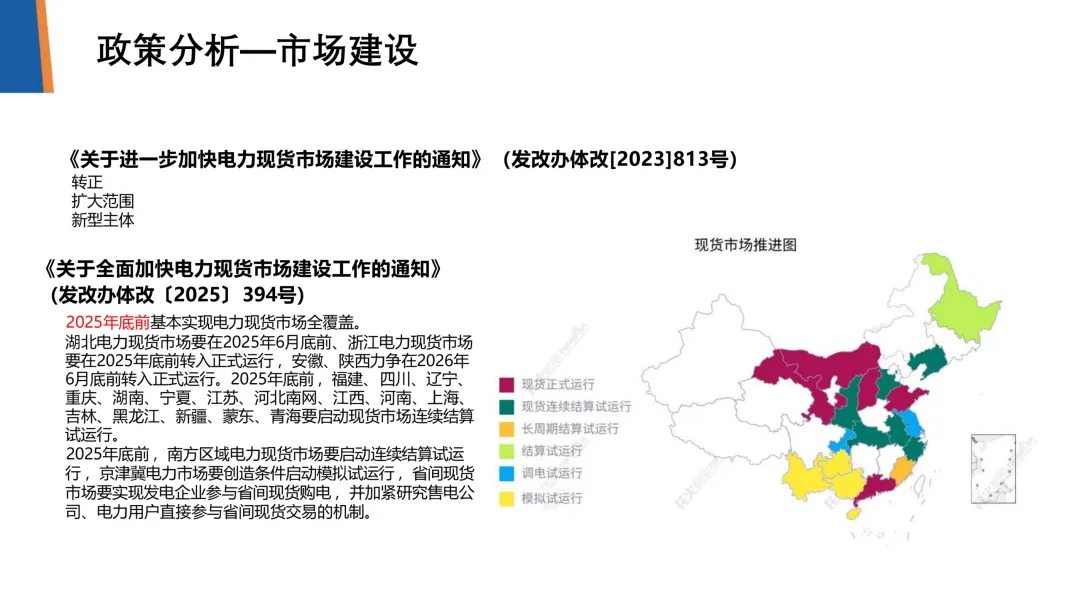 我国电力市场化改革历经集资办电、政企分开、厂网分开等阶段,2015年中发9号文确立“管住中间、放开两头”的体制架构后,现货市场建设加速推进。从2017年第一批8个试点地区起步,到2025年《关于全面加快电力现货市场建设工作的通知》提出年底前基本实现全覆盖,政策持续破除市场壁垒,推动形成统一开放、竞争有序的电力市场体系。其中,输配电价改革、煤电容量电价机制等配套政策,为现货交易提供了稳定的制度保障。