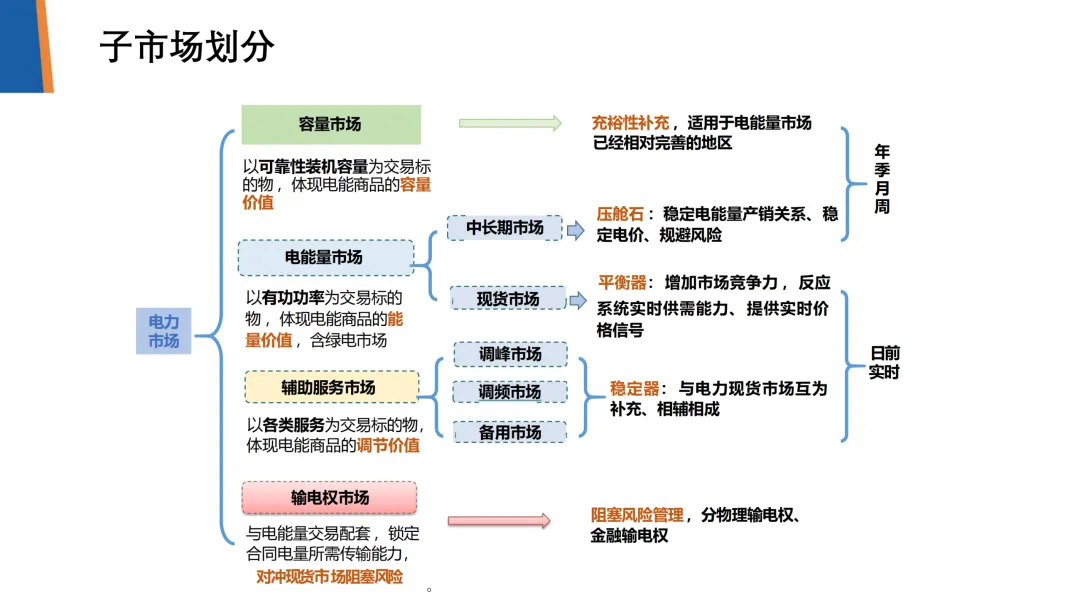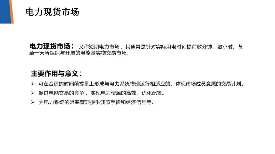 现货市场通过日前、日内、实时三级市场体系实现电力平衡。日前市场以社会福利最大化为目标进行集中优化出清,形成机组组合和分时电价;日内市场滚动优化灵活调节资源;实时市场作为最后平衡阶段,依据超短期预测和实际运行状态调整出力计划。