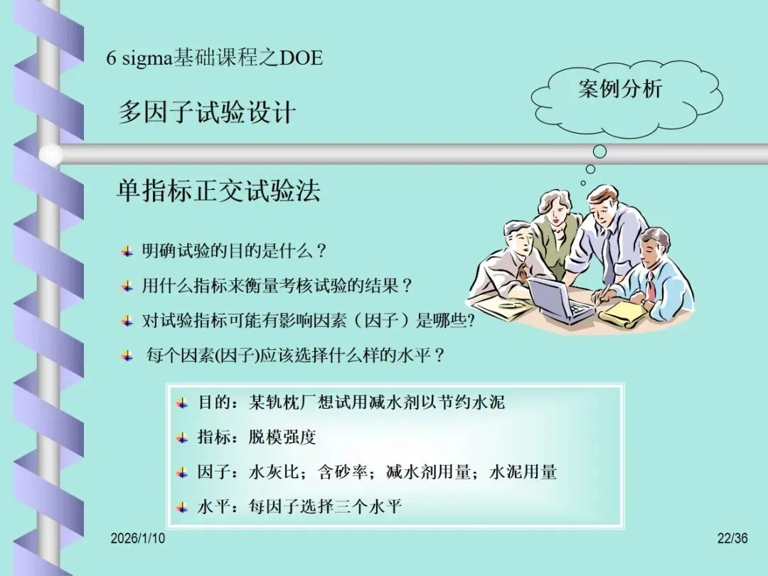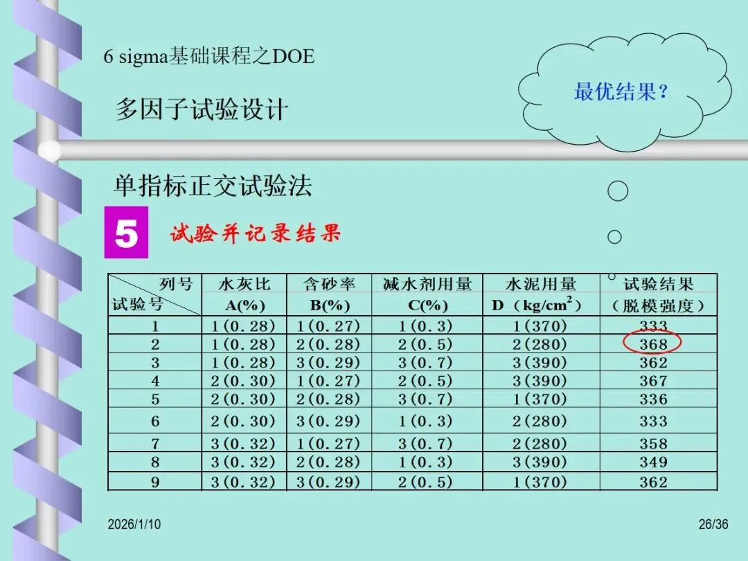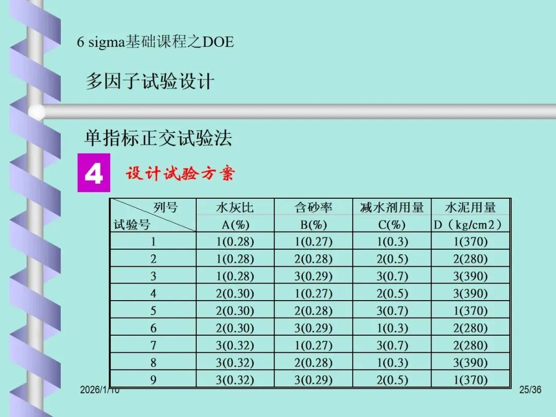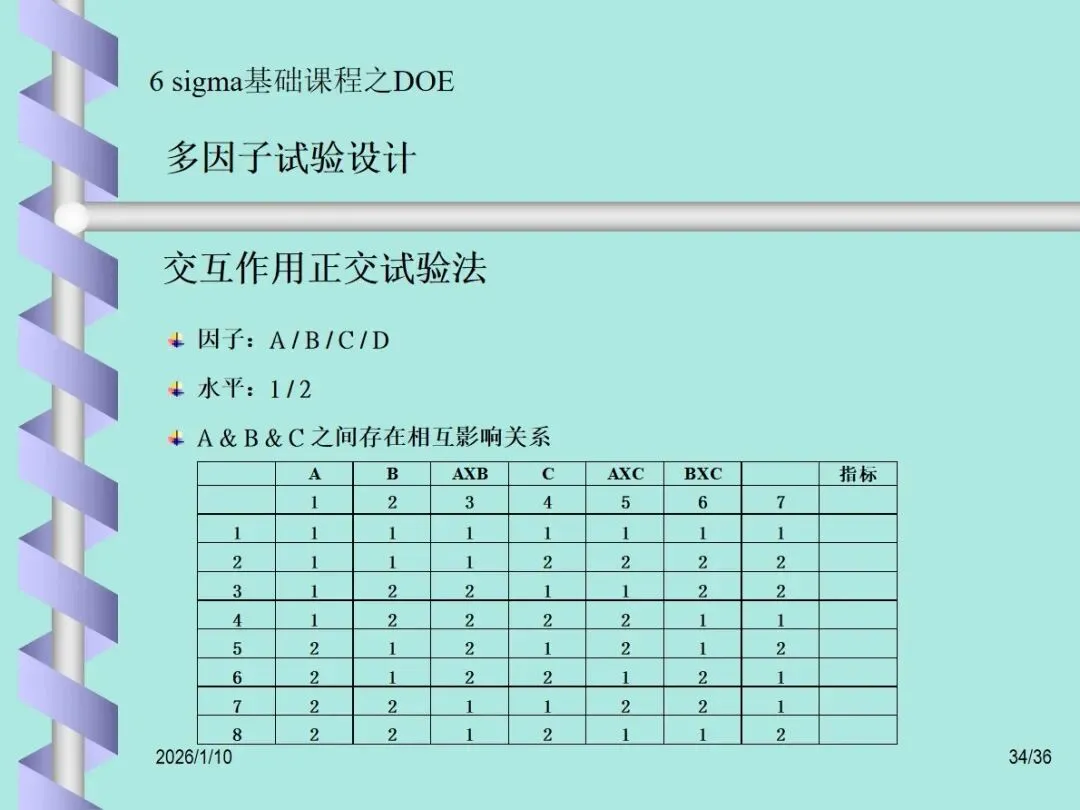 DOE 即试验设计,是 6Sigma 基础课程中的核心质量优化工具,主要应用在产品 / 过程设计、制造等阶段,和 QFD、FMEA、SPC 等工具配合使用,是过程鉴定与优化的关键手段,核心就是用最少的试验次数筛选关键影响因子、找到最优试验方案,最终实现降低成本、提升产品品质的目标。