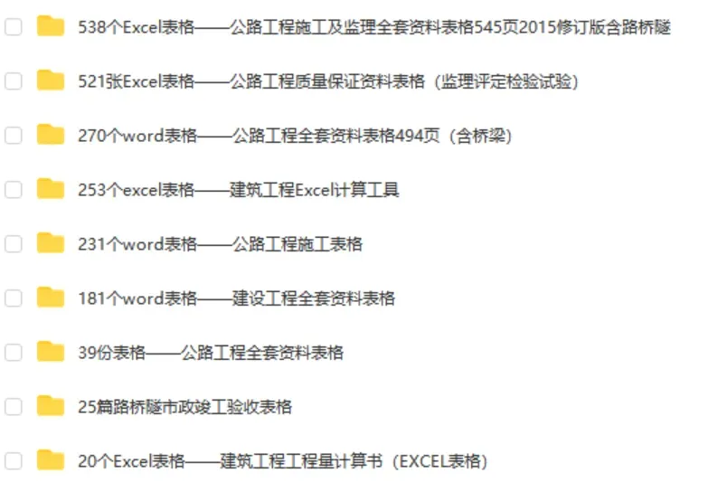2063份路桥相关表格