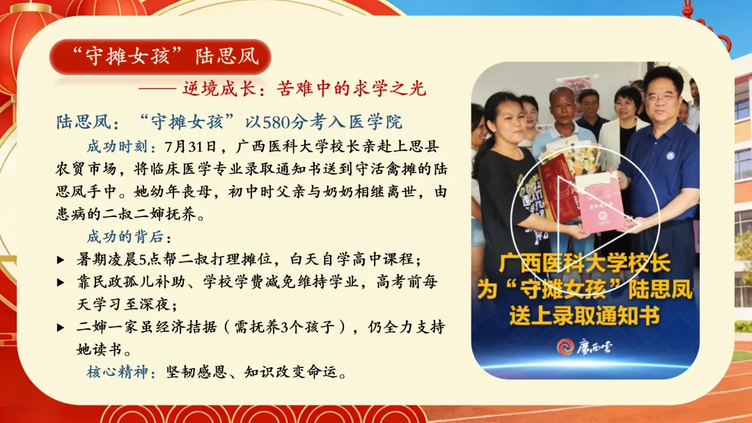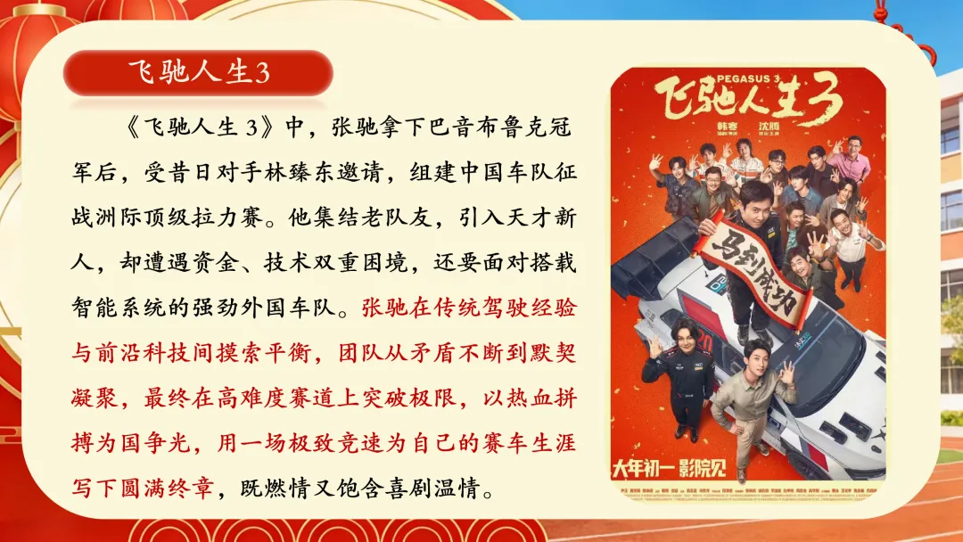 ppt中融入《飞驰人生 3》《熊出没》等热门影视素材,还有守摊女孩、光速少年等真实励志案例,用鲜活故事传递坚持、协作、突破的正能量,让德育教育不枯燥。