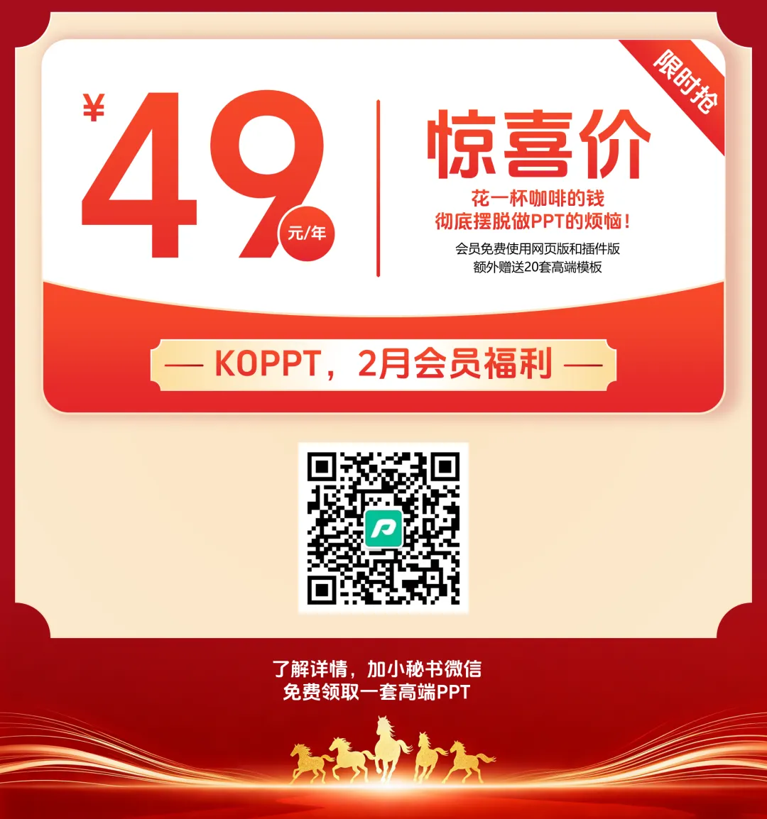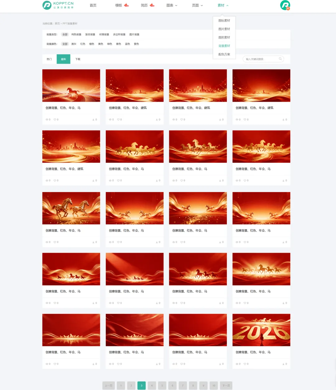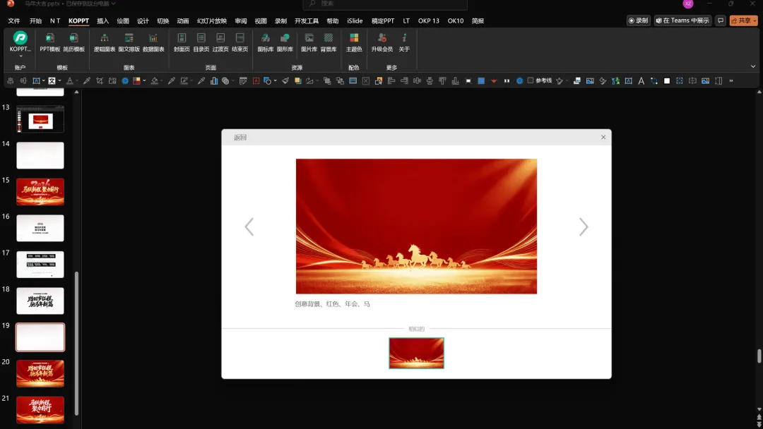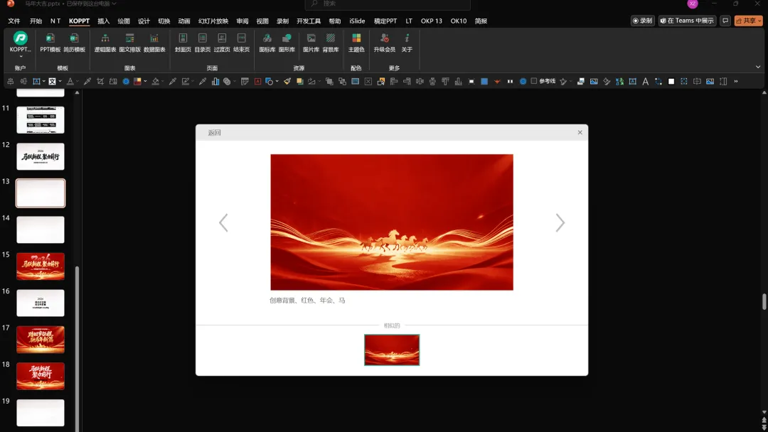 接下来,打开KOPPT插件,找到最新的马年背景素材,一键即可导入。