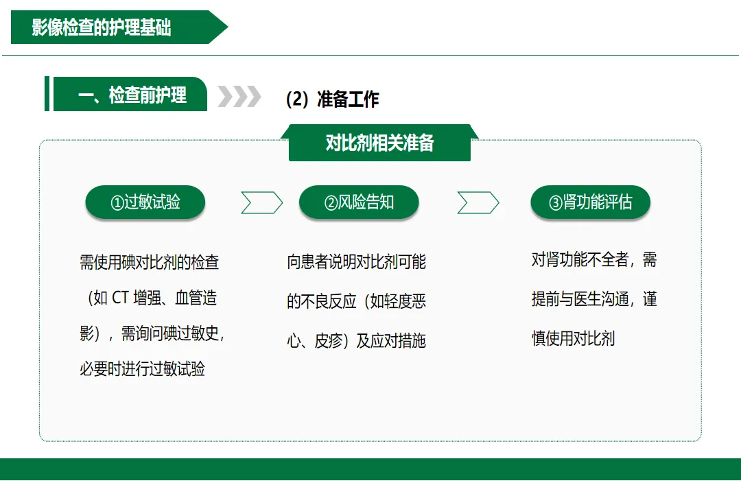 👉影像科医护人员:必备!规范检查流程,提前识别风险,遇到紧急情况能快速反应,比如对比剂过敏休克时,知道先肌注0.3-0.5mg肾上腺素,再建立静脉通道;👉临床护士:尤其是经常送患者做影像检查的护士,了解检查前准备、对比剂注意事项,能更好地指导患者,避免意外;👉医学生:提前掌握影像科急救知识,临床实习更从容;👉普通读者:做影像检查前看看,知道哪些情况要提前告知医生,比如碘过敏史、肾功能不好,减少检查风险。这份PPT的作用可不止是“科普”,它是一本影像科急救实操手册:✅规范护理流程:从检查前的患者评估、饮食准备,到检查中的体位固定、对比剂注射,再到检查后的留观指导,一步一步教你做,避免遗漏细节;✅降低对比剂风险:详细对比碘和钆对比剂的过敏风险、预处理措施、不良反应处理,比如碘对比剂要提前查过敏史,钆对比剂要严格筛查肾功能,GFR<30mL/min的患者禁用;✅掌握心肺复苏技能:用“黄金4-6分钟”的时间数据提醒你急救的重要性,胸外按压的位置(两乳头连线中点)、深度(5-6cm)、频率(100-120次/分钟),人工呼吸的方法,甚至AED的使用都有提示;✅应对突发情况:比如对比剂外渗怎么处理,过敏性休克的急救流程,看完遇到紧急情况不慌乱。影像科急救分秒必争,多掌握一点知识,就多一分保障。这份PPT把专业的医学知识转化为通俗易懂的内容,既有理论又有实操,适合反复学习。如果你是医护人员,它能帮你规范急救流程;如果你是普通读者,它能让你更了解影像检查,减少恐惧。赶紧把这份PPT收藏起来,转发给身边的朋友!关键时刻,它可能就是救命的关键!公众号内发送关键词:课件获取