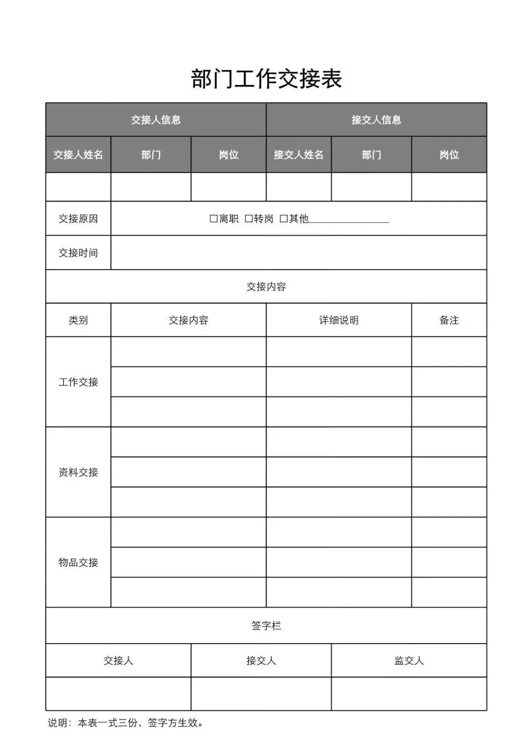 工作交接表