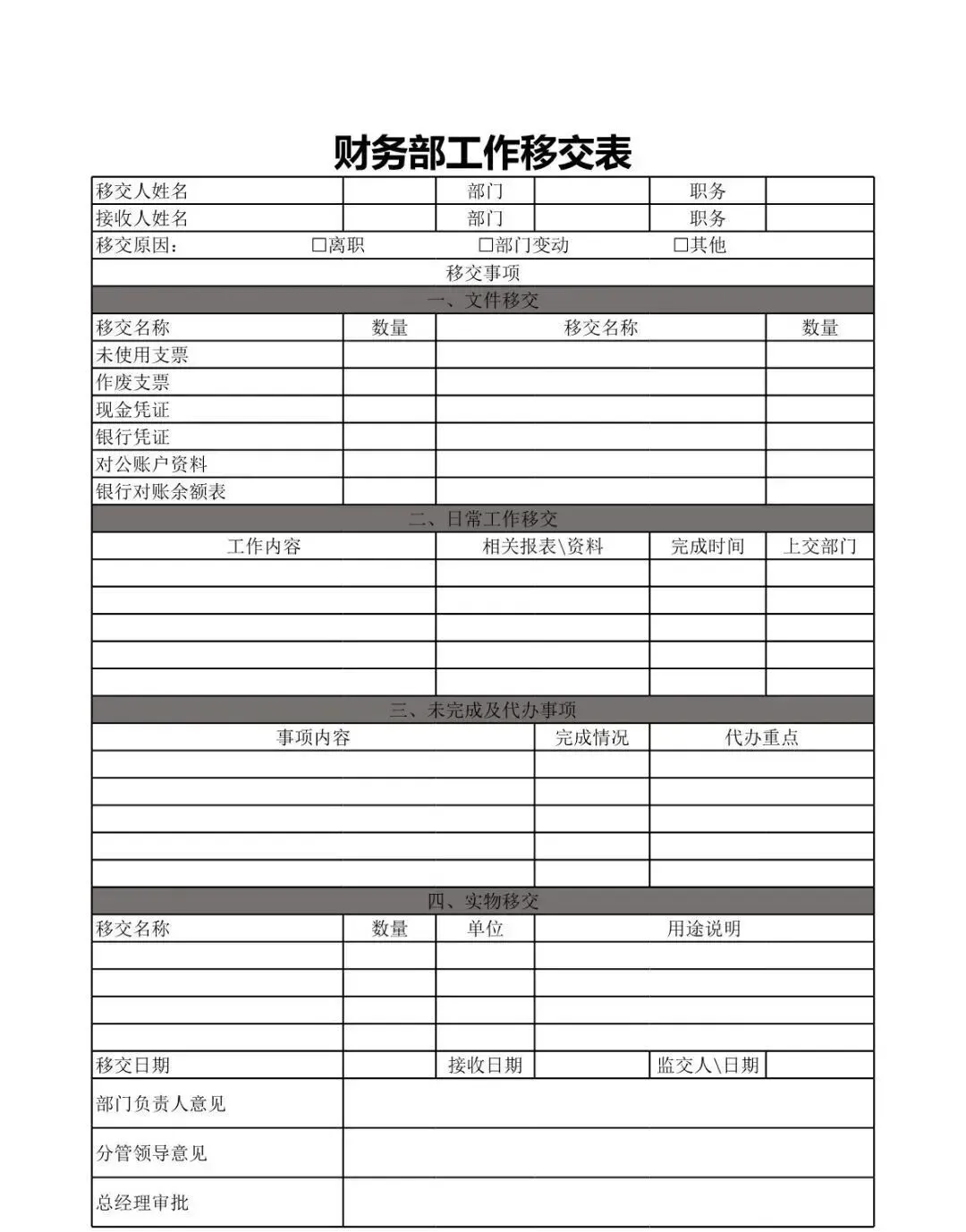 >【110款】工作交接表,离职交接表(Excel电子版下载)!