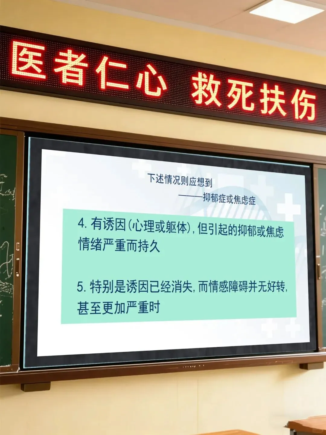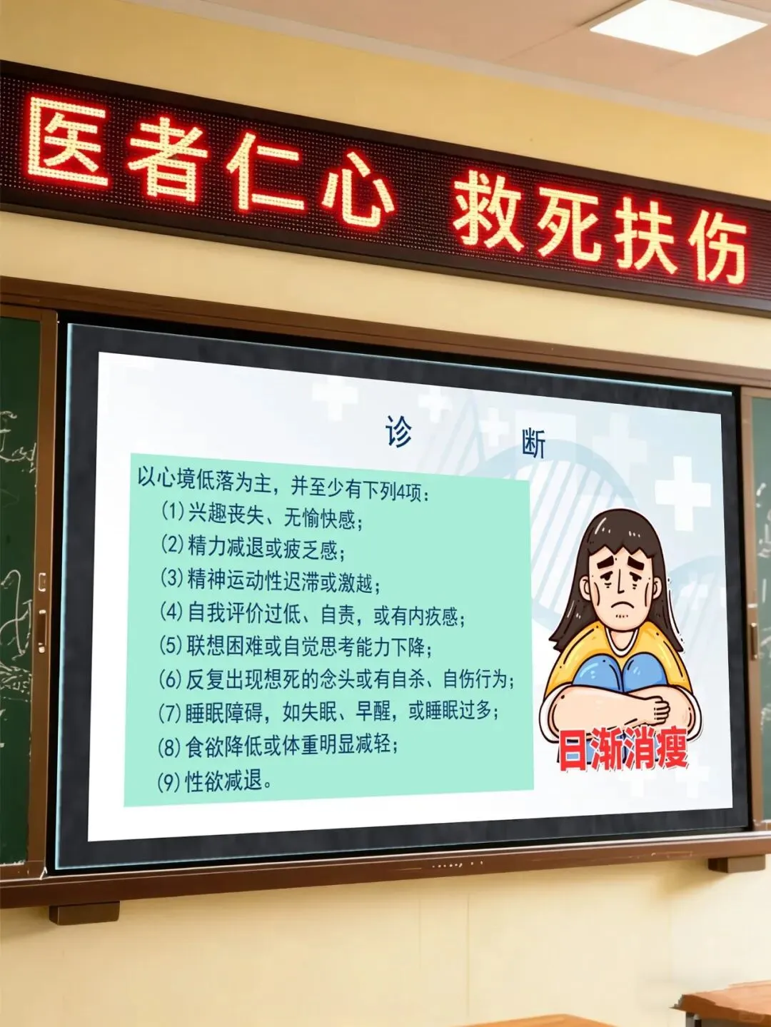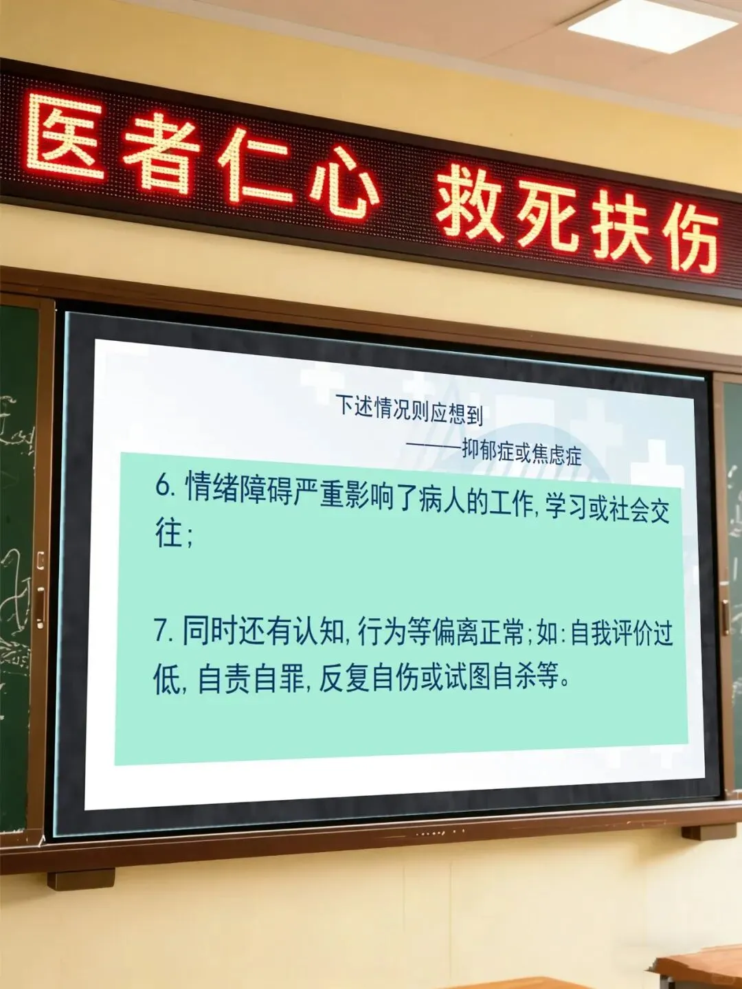 同时要规避治疗误区,避免剂量不足、用药时间过短或擅自停药,这些都会导致病情复发。心理干预同样重要,需帮助患者调整认知误区、缓解心理压力,同时关注其社会支持系统。此外,要重视患者的自卑心理和社会歧视问题,提升治疗依从性。希望大家把这些要点运用到临床工作中,提高识别敏感度,规范干预流程,用专业的判断和温暖的关怀,帮助患者摆脱情绪困扰,重建心理平衡。